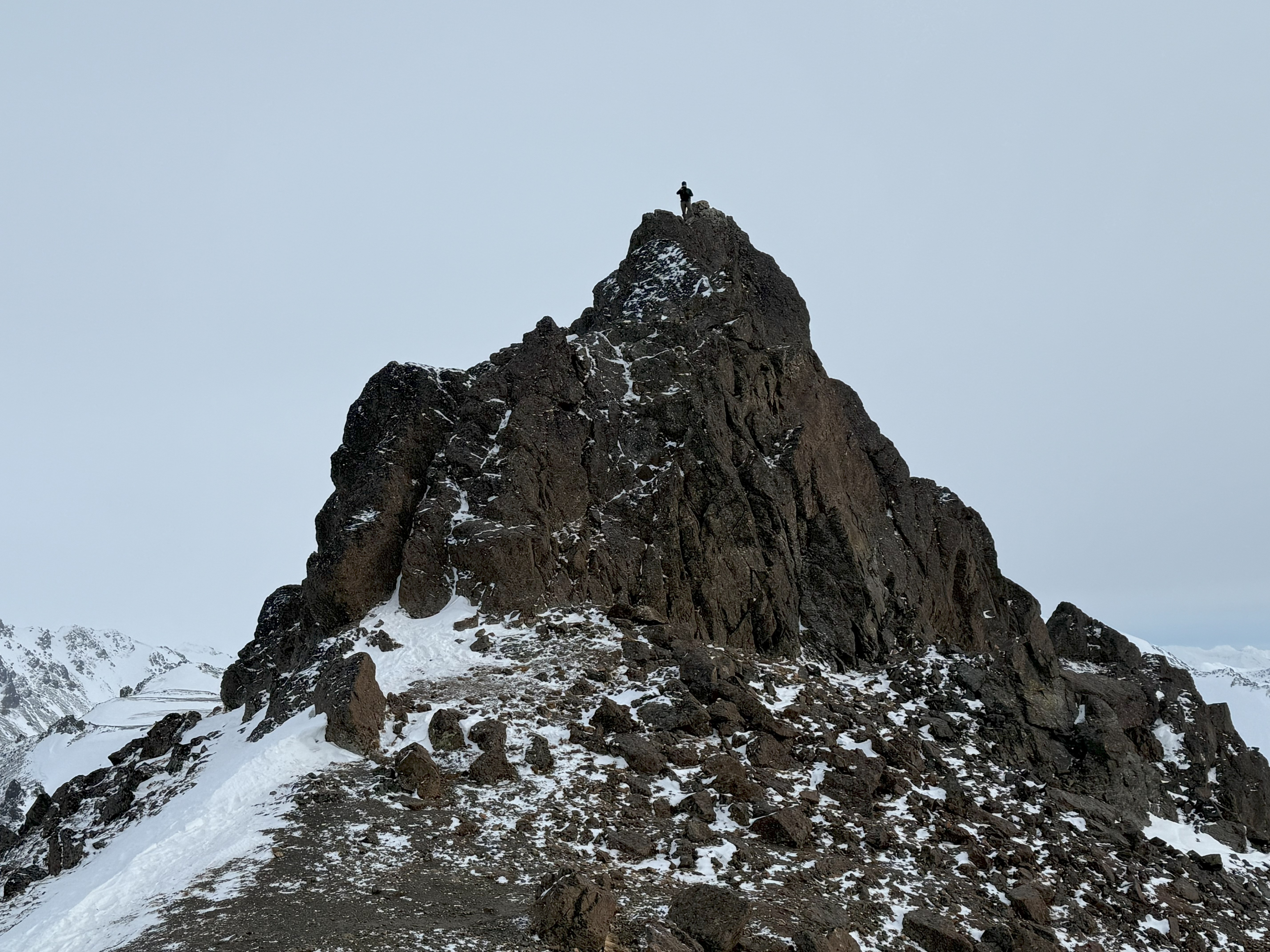 Climbing the summit block can be dangerous in icy conditions or if you are not comfortable with exposure and heights. The side opposite of the approach drops off precipitously and a mistake there would likely be your last slip and fall.