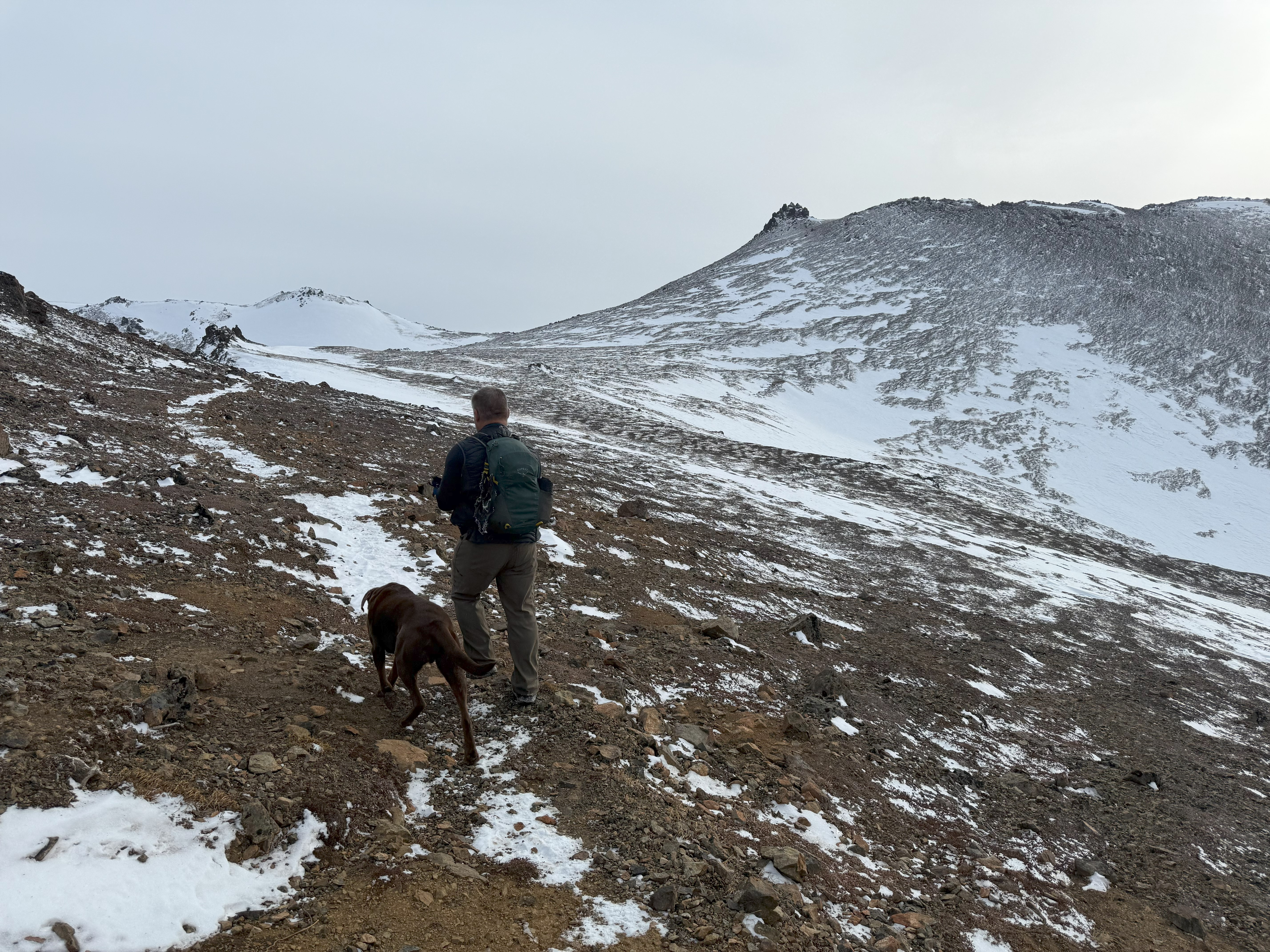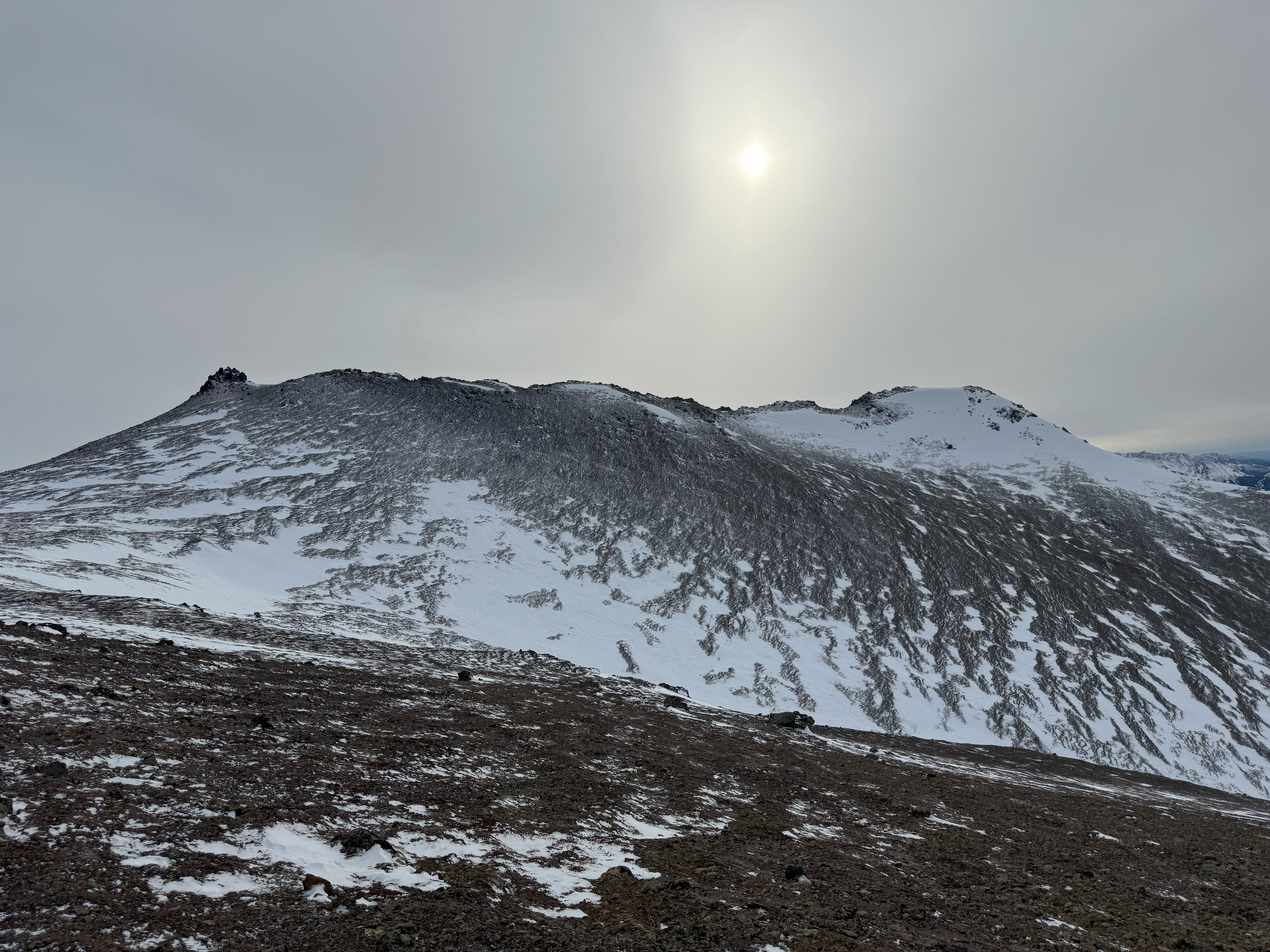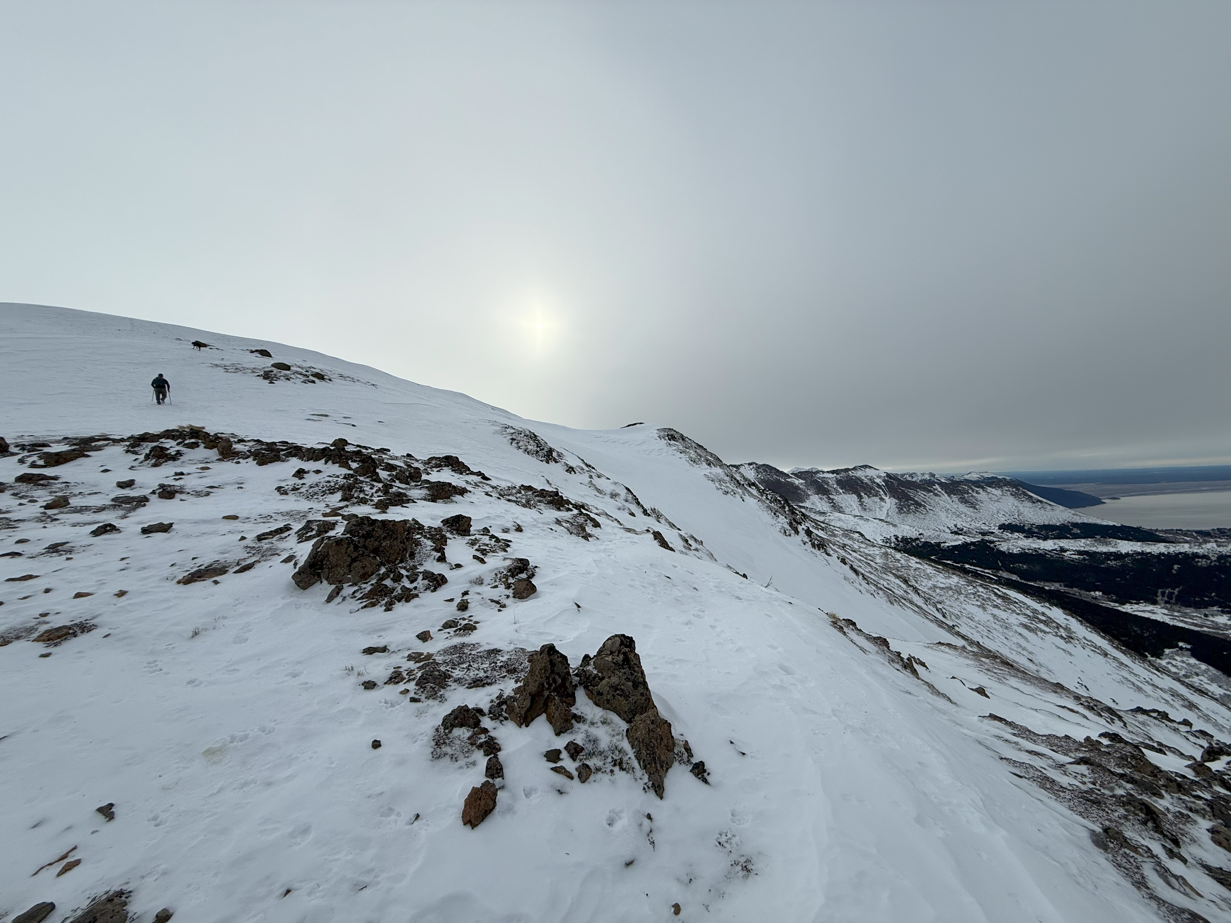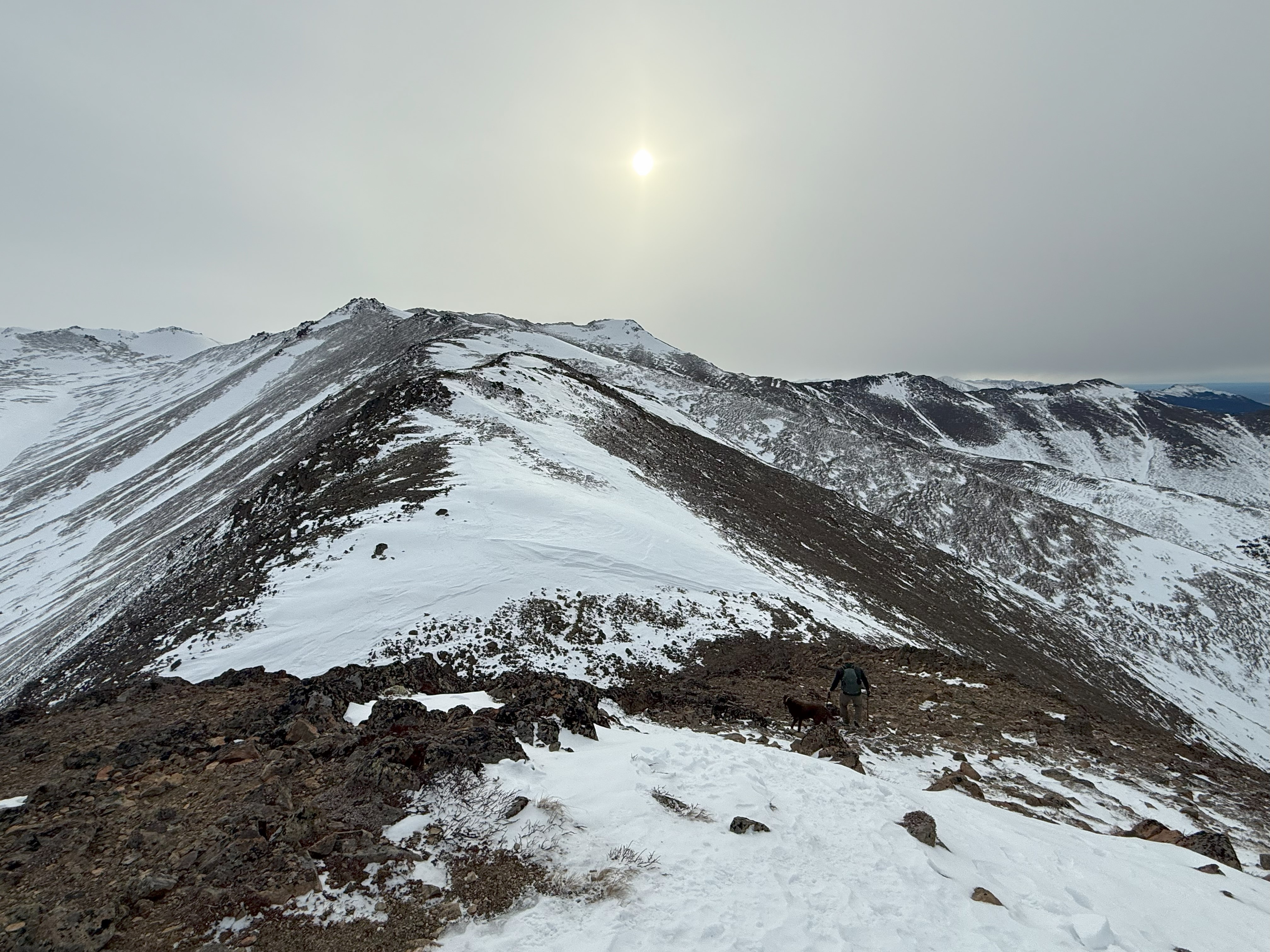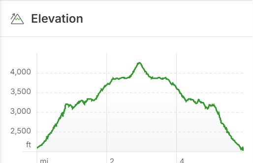 The portion of ridge beyond Grandview or Turtle Point has a couple of high passes, requiring descending maybe 100′ each time, with a total elevation gain of about 1750′ over the next 5.1 miles to the summit. The dips feel even smaller on the return unless you’ve had the plague for the last couple of weeks, then those 100′ ups feel a little worse.