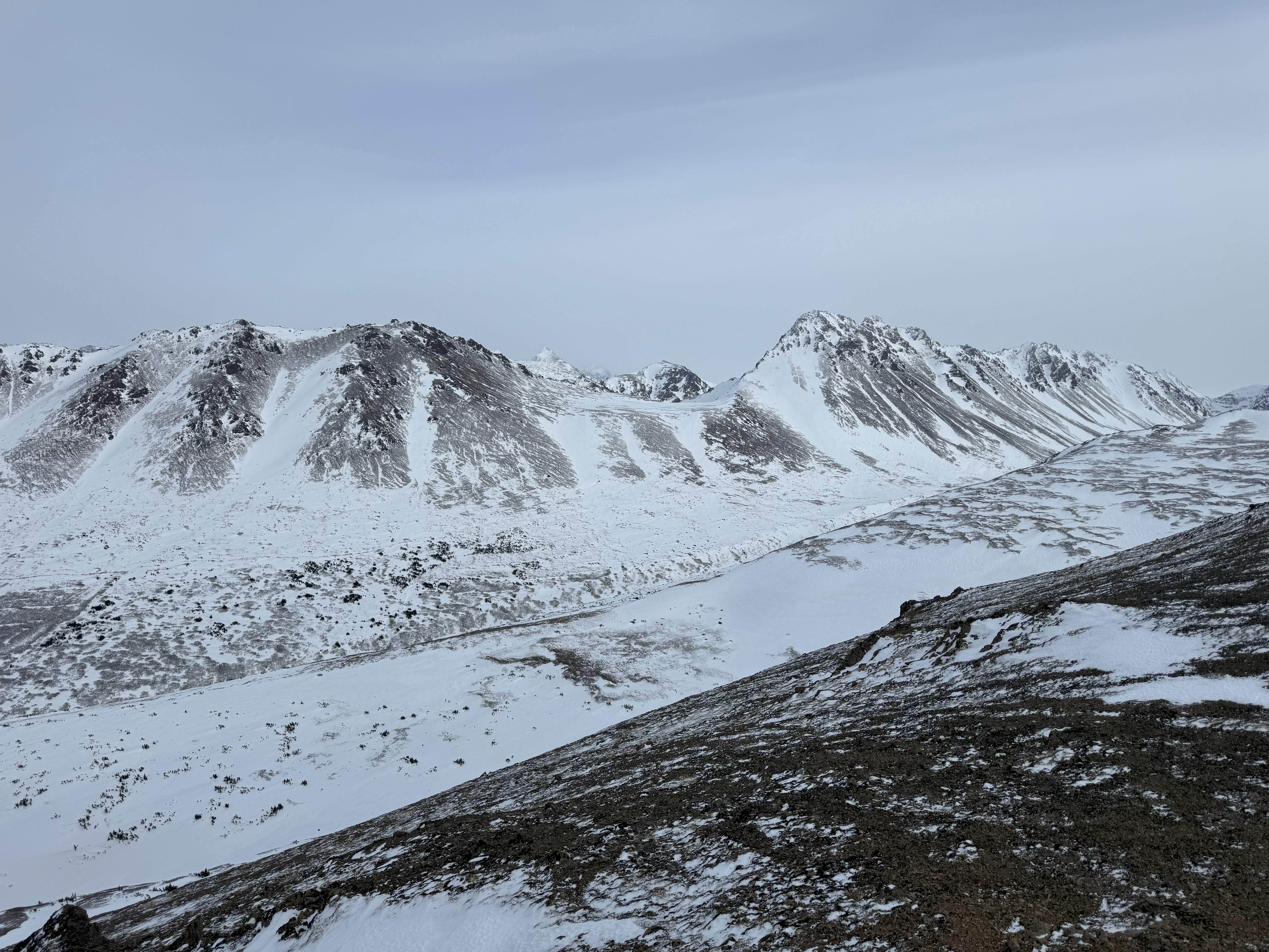 April 26, 2025 Peak 1216 AKA 3990: 3990′ Ship Creek Hill: 3842′ (chugach Front Range Peak #24) Mileage: 15 Miles Elevation Gain: 5,700′ The majority of the Southcentral Alaska winter of 2024-25 was uncharacteristically warm and relatively snow free, but here we were in April, with record breaking snowfall around Anchorage. The ridges and peaks…