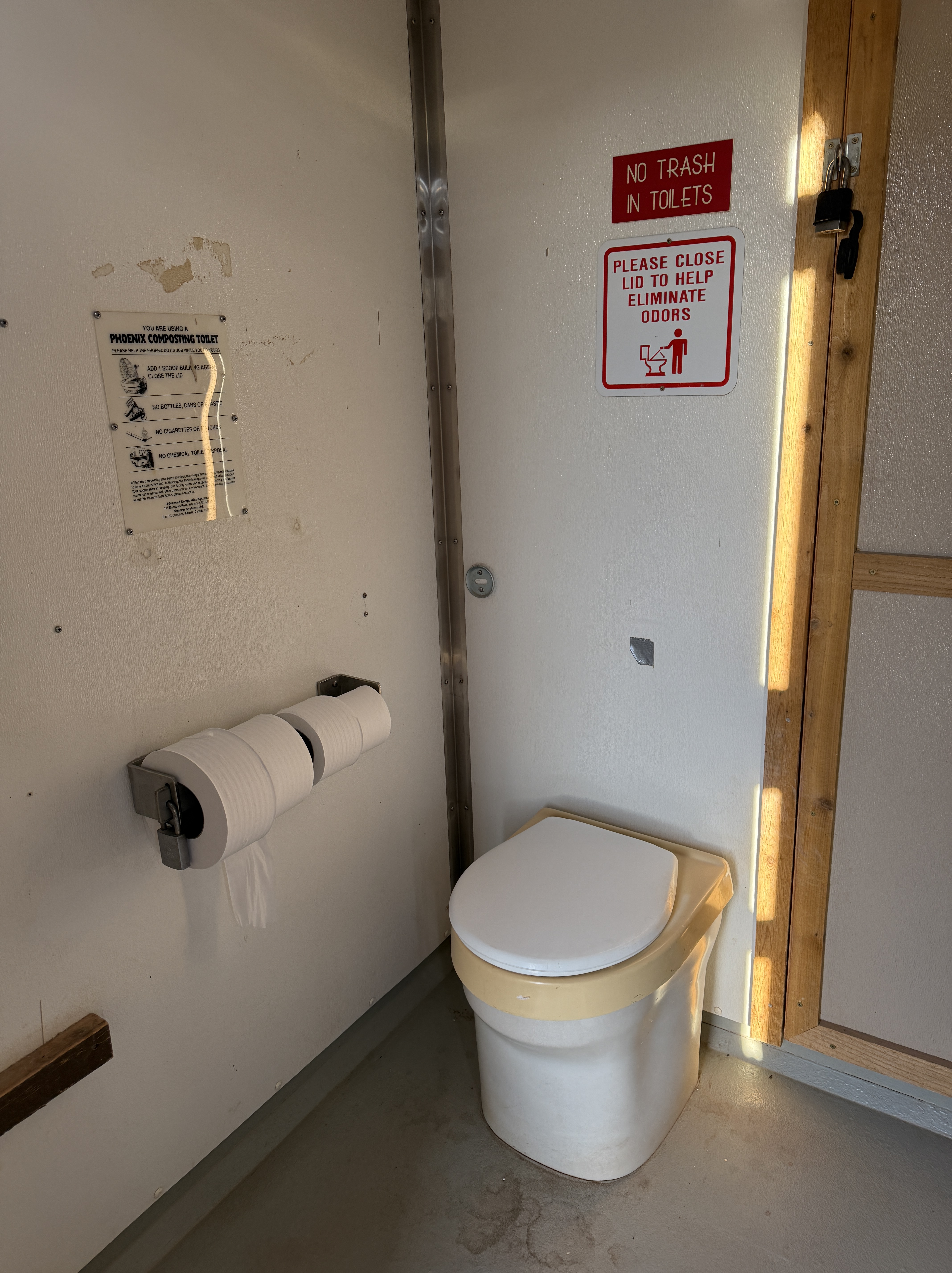 Cottonwood Campground is probably one of my favorite campgrounds I have ever been in. Many of the sites have quite a bit of privacy, each one adorned with a picnic table and a critter box, a metal box with a locking lid, much like our bear bins in Alaska. I brought an Ursack, but it was nice to organize all of my food and odiferous items in the bin. There is a composting toilet nearby and even a spigot with potable water, although it was shut off for the winter.