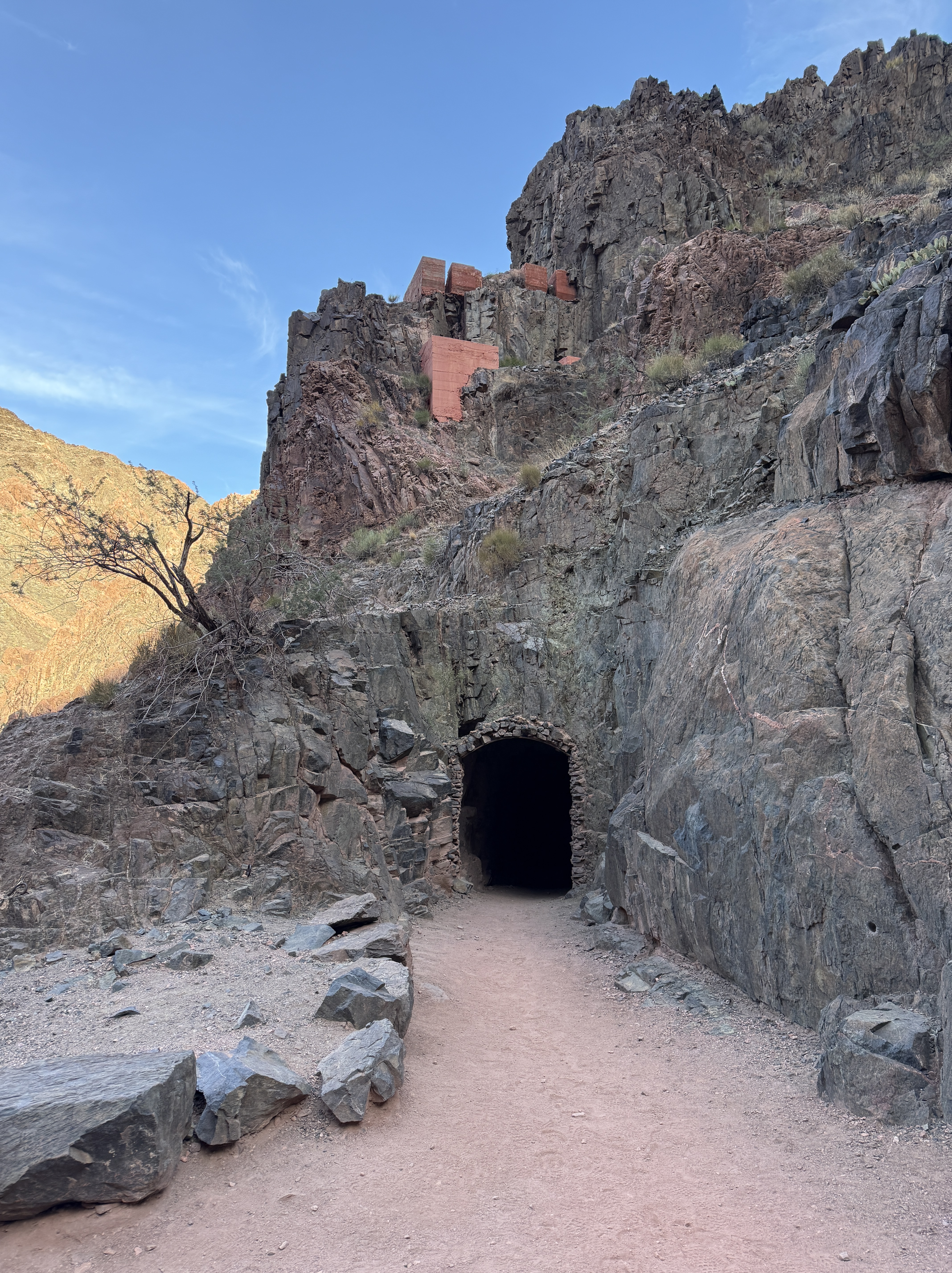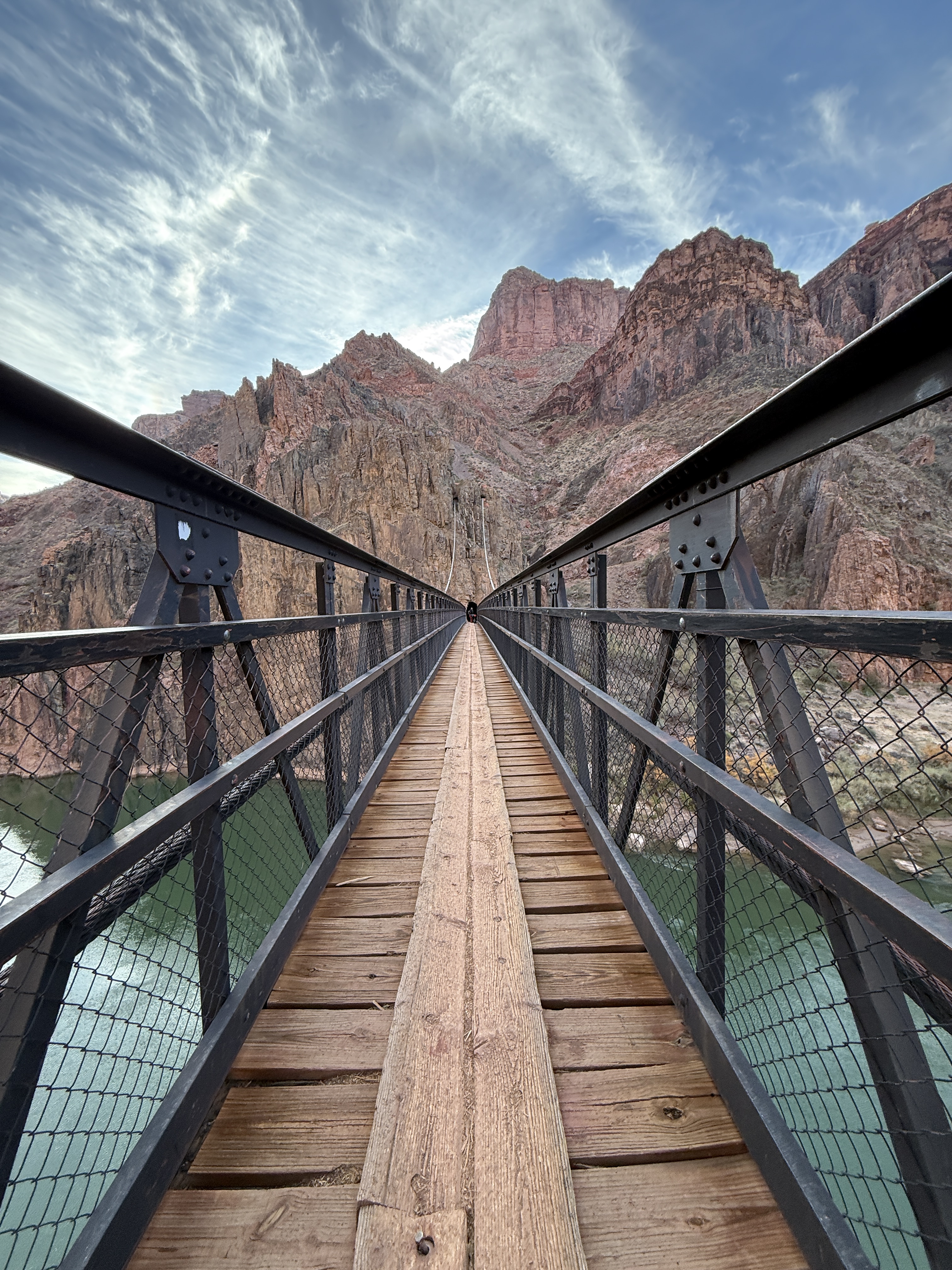 I was descending into the depths of the second largest canyon in the world to a river that I had known many years ago when I was just a teenager whitewater rafting from Moab to Lake Powell. I could feel it welcoming me like a friend long missed. The winding path brought me to the opening of a tunnel, the entrance framed with stacked stones; a portal to a civil engineering feat, the Kaibab Trail Suspension Bridge, AKA The Black Bridge.