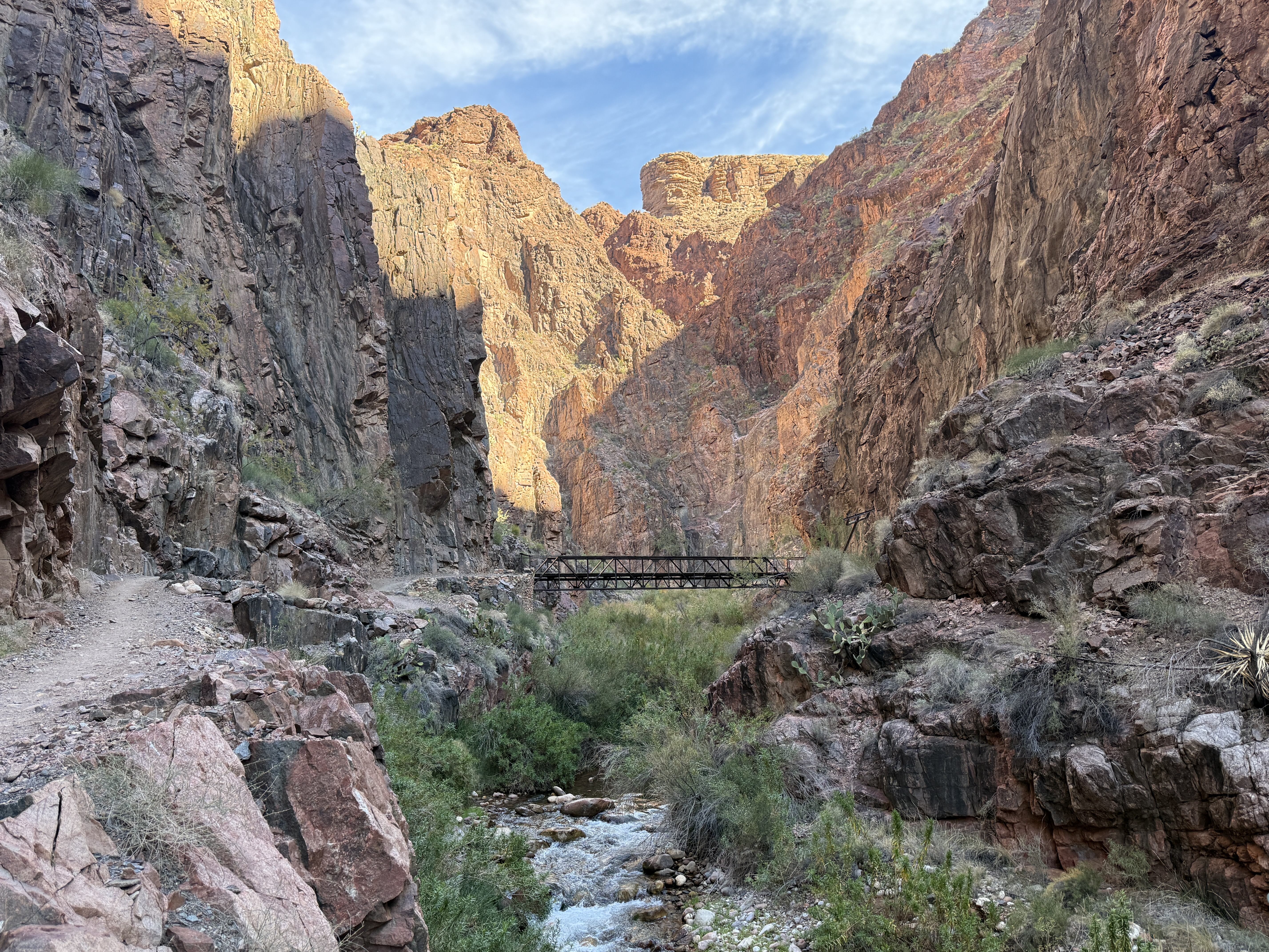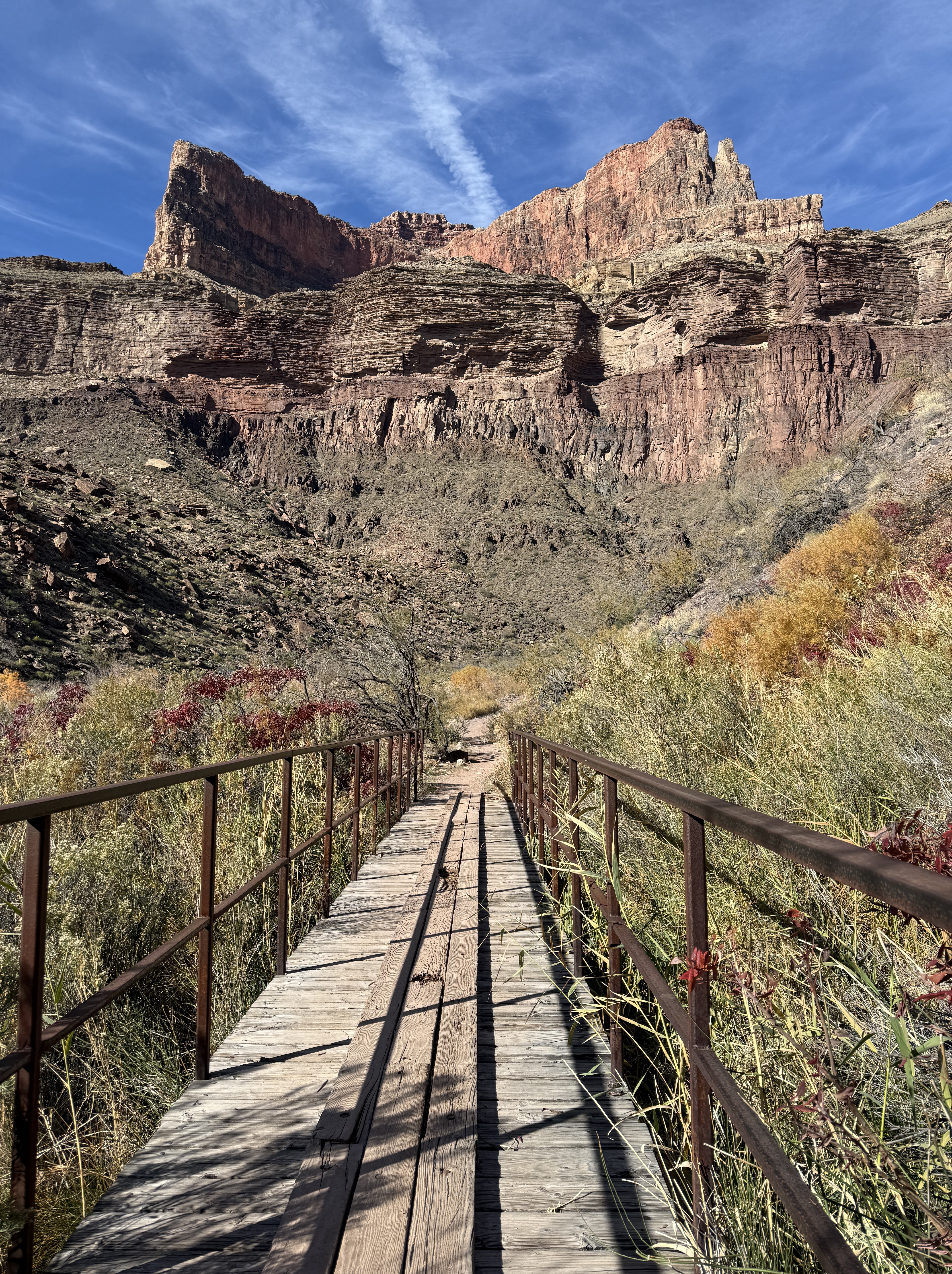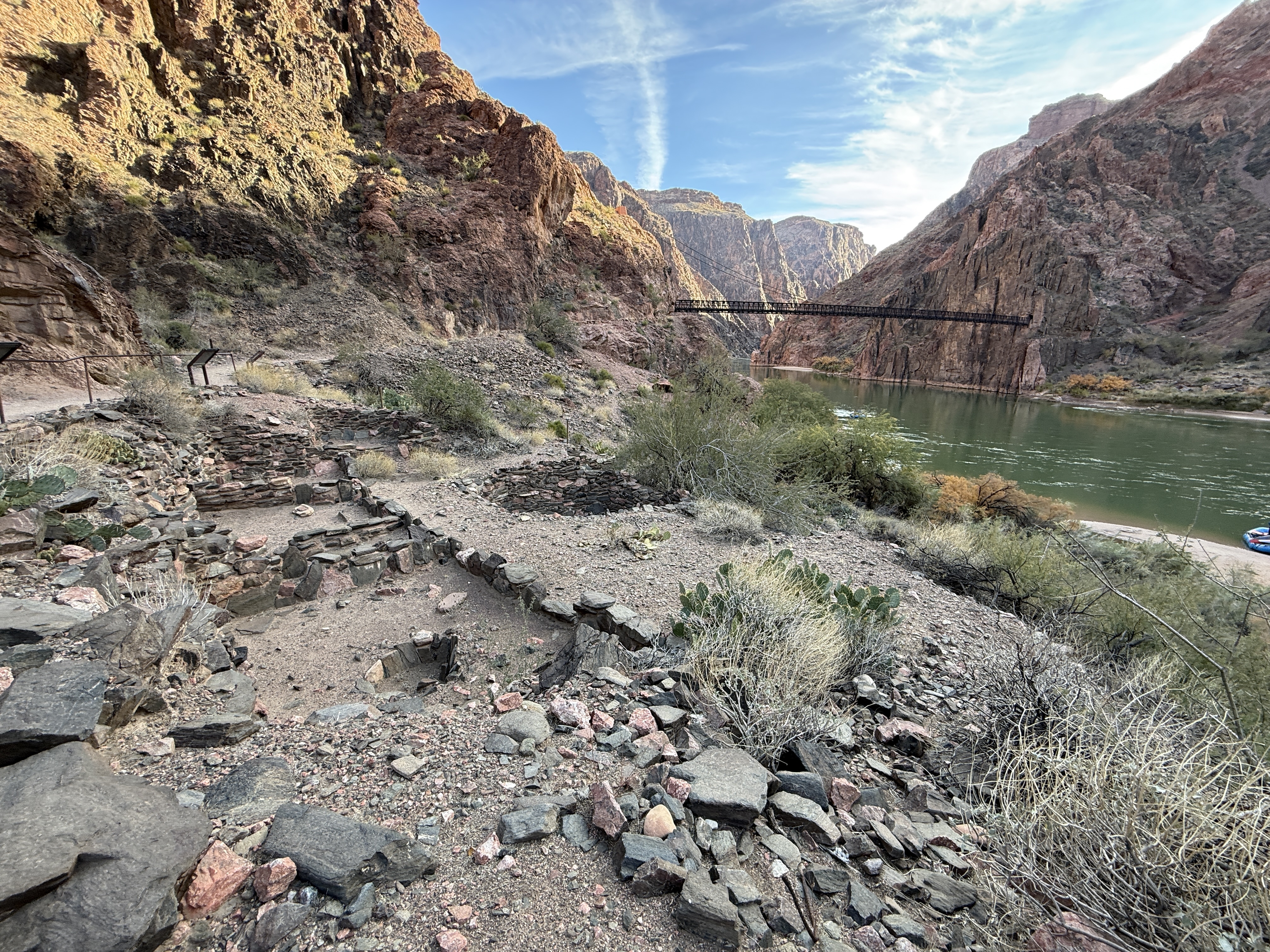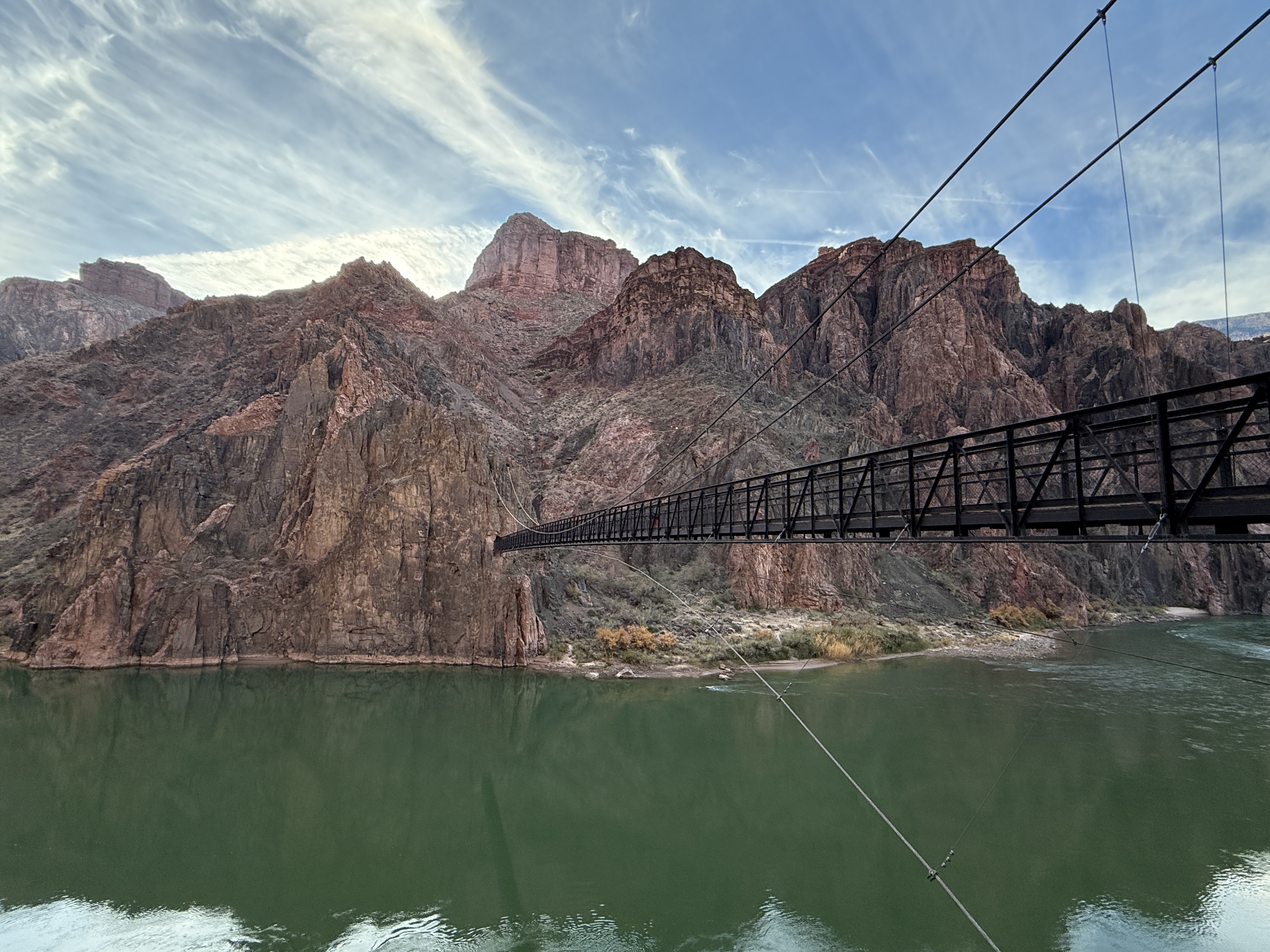 The Silver Bridge, just downstream, was built in the late 1960s, connecting the Bright Angel Trail to Phantom Ranch. These are the only engineered crossings over the Colorado River for hundreds of miles. Unfortunately, this bridge was closed during my trip, but I’m looking forward to crossing it on my next visit.