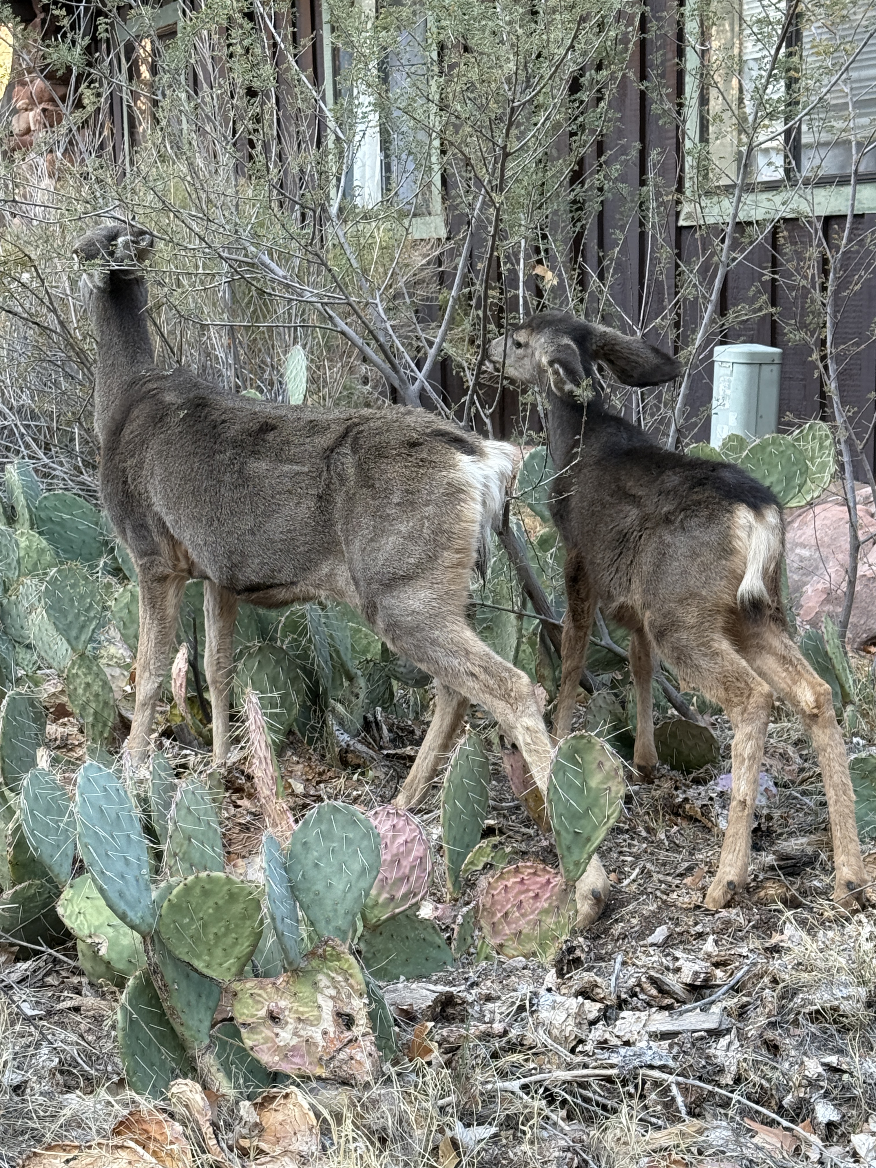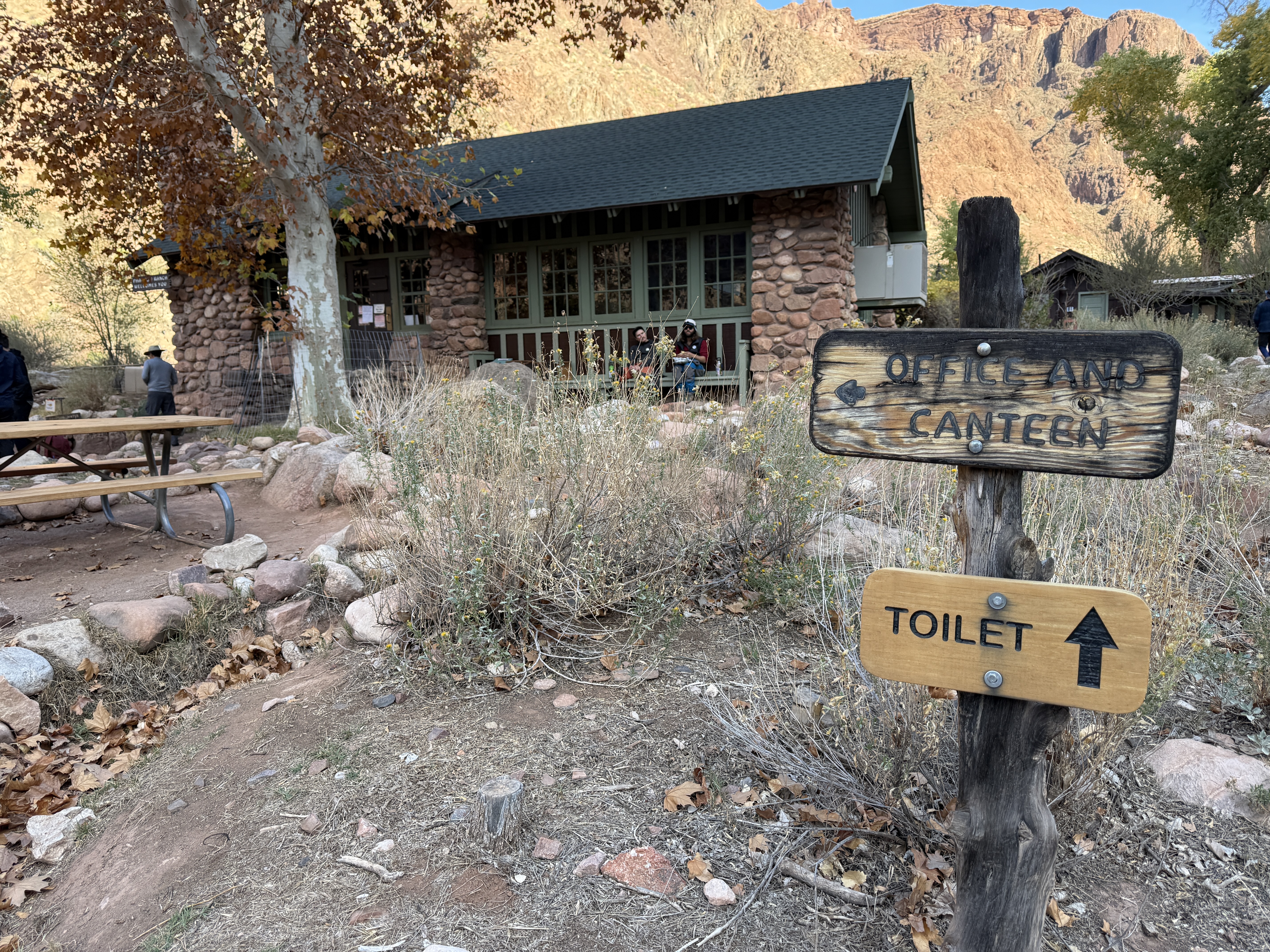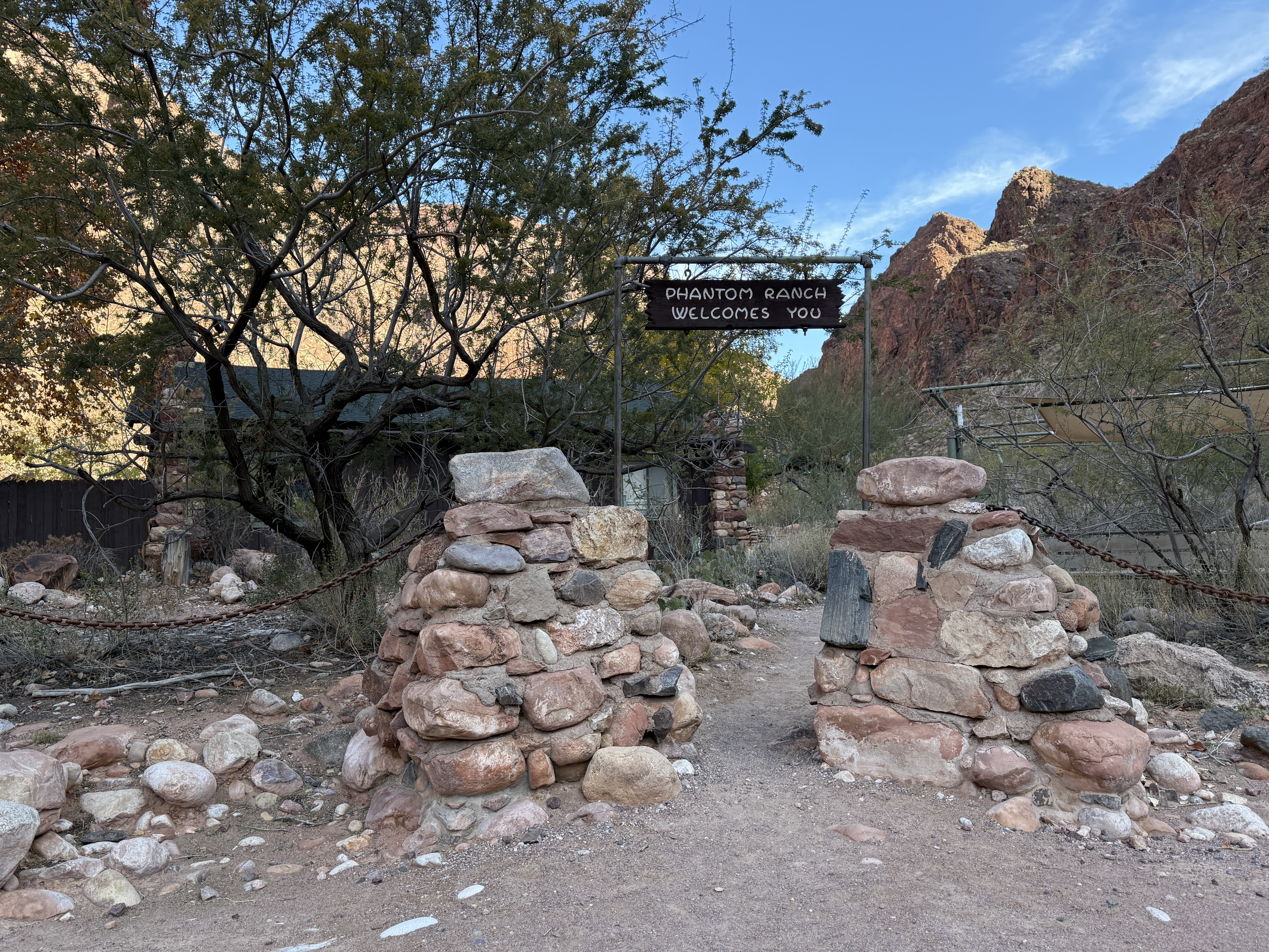 I passed under a wooden sign welcoming me to Phantom Ranch. A small heard of mule deer surprised me. They were the first wildlife I had seen since I started off from the trailhead the day before. They were completely unbothered by me as I snapped some pictures and videos. The Phantom Ranch spread is beautiful, with modest buildings made of wood and stone, stained and painted in hues of browns and greens, matching the environment in a way that shows true respect for the place.