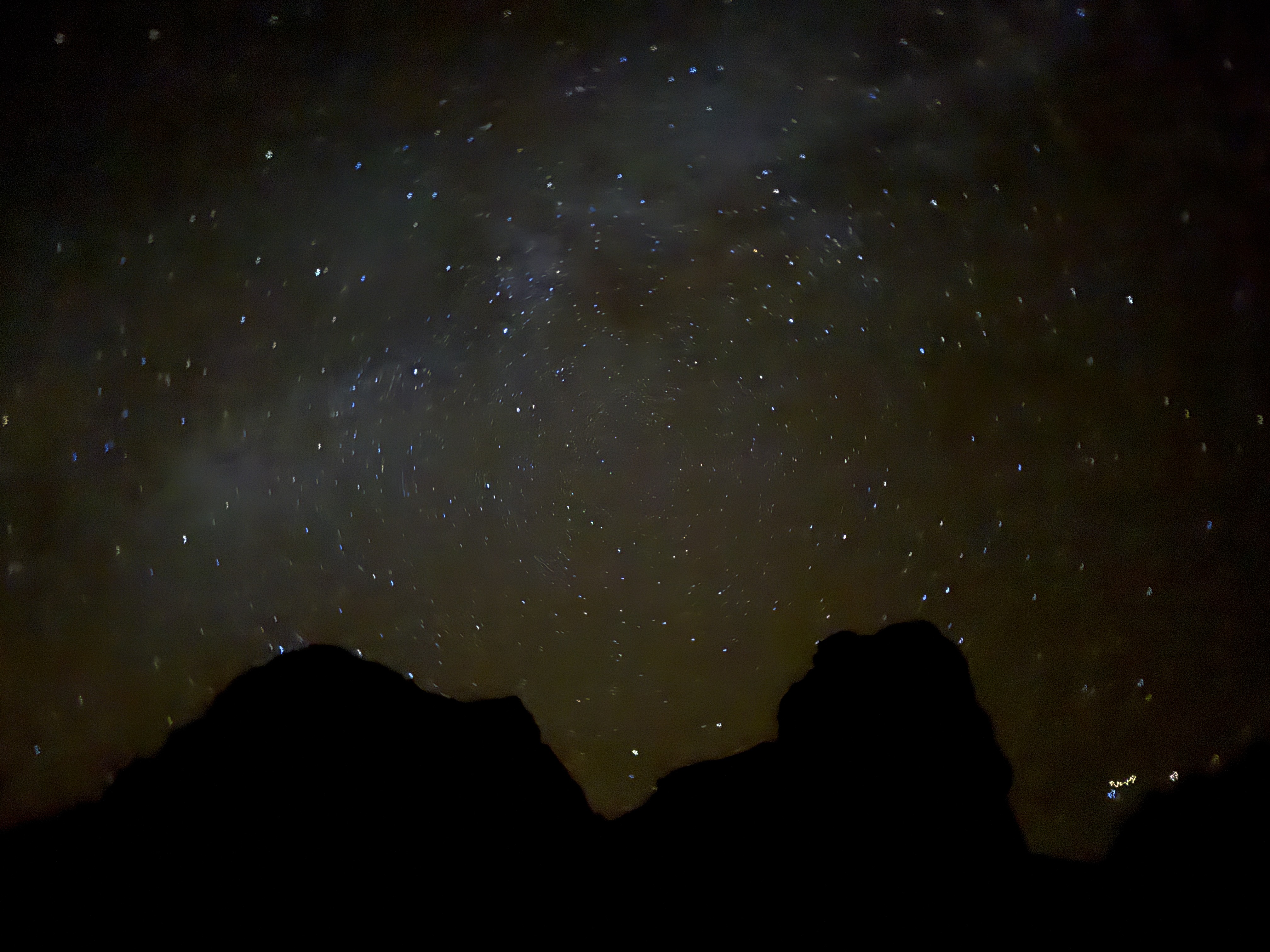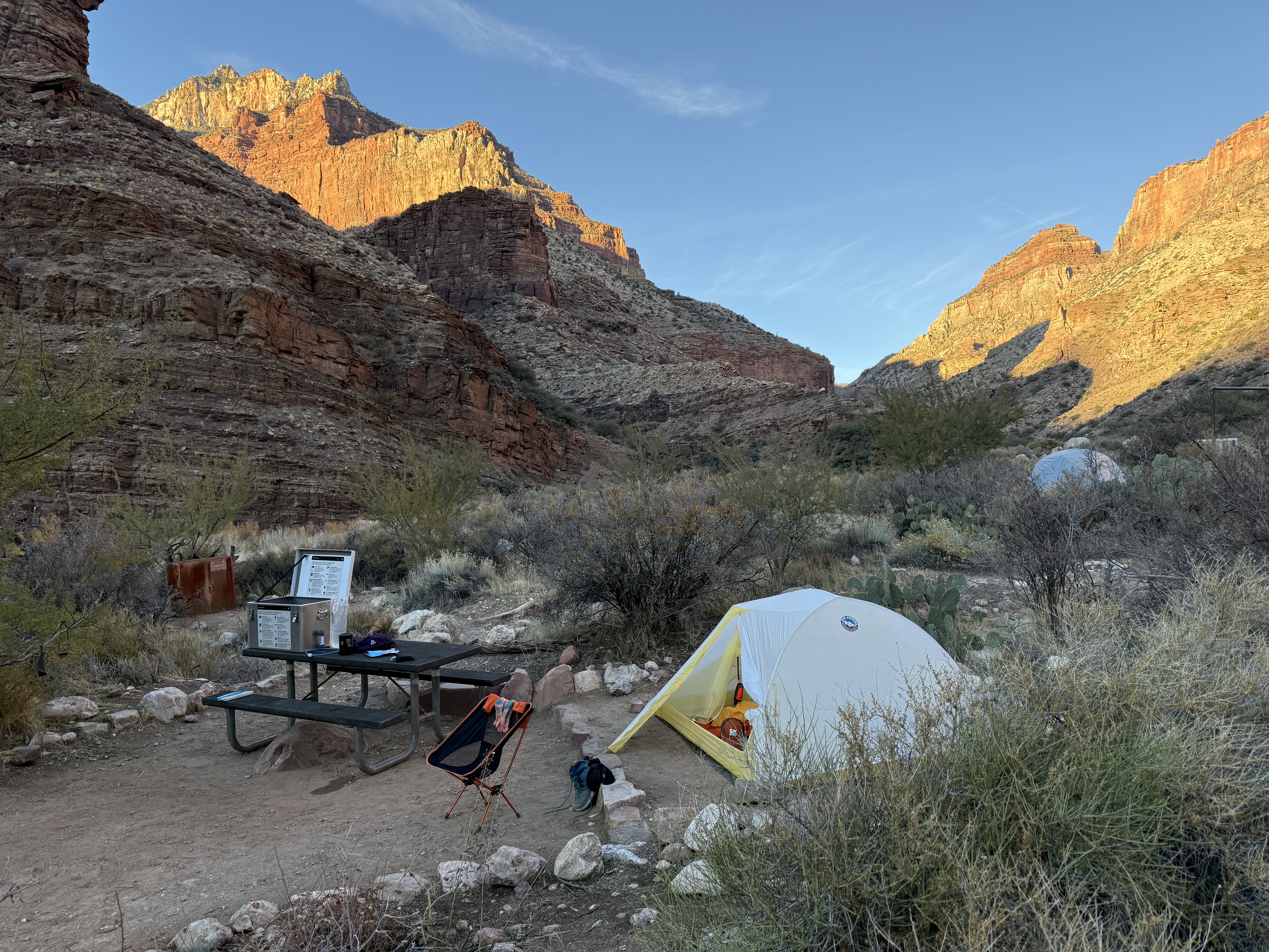 Fed and organized, I crawled, literally, into my tent to do some reading. The dark came quickly, and when I say dark, I mean dark! The Grand Canyon was designated a Dark Sky Park in 2016 after a massive project to replace more than 5,000 light fixtures in the park with dark skies compliant units. I opened my tent and leaned out, absolutely enraptured by the milky way and the uncountable number of stars. I had never seen a sky so dark! I could pick out satellites (ironic after my lack of sat service earlier in the day), Starlink arrays and even the ISS!