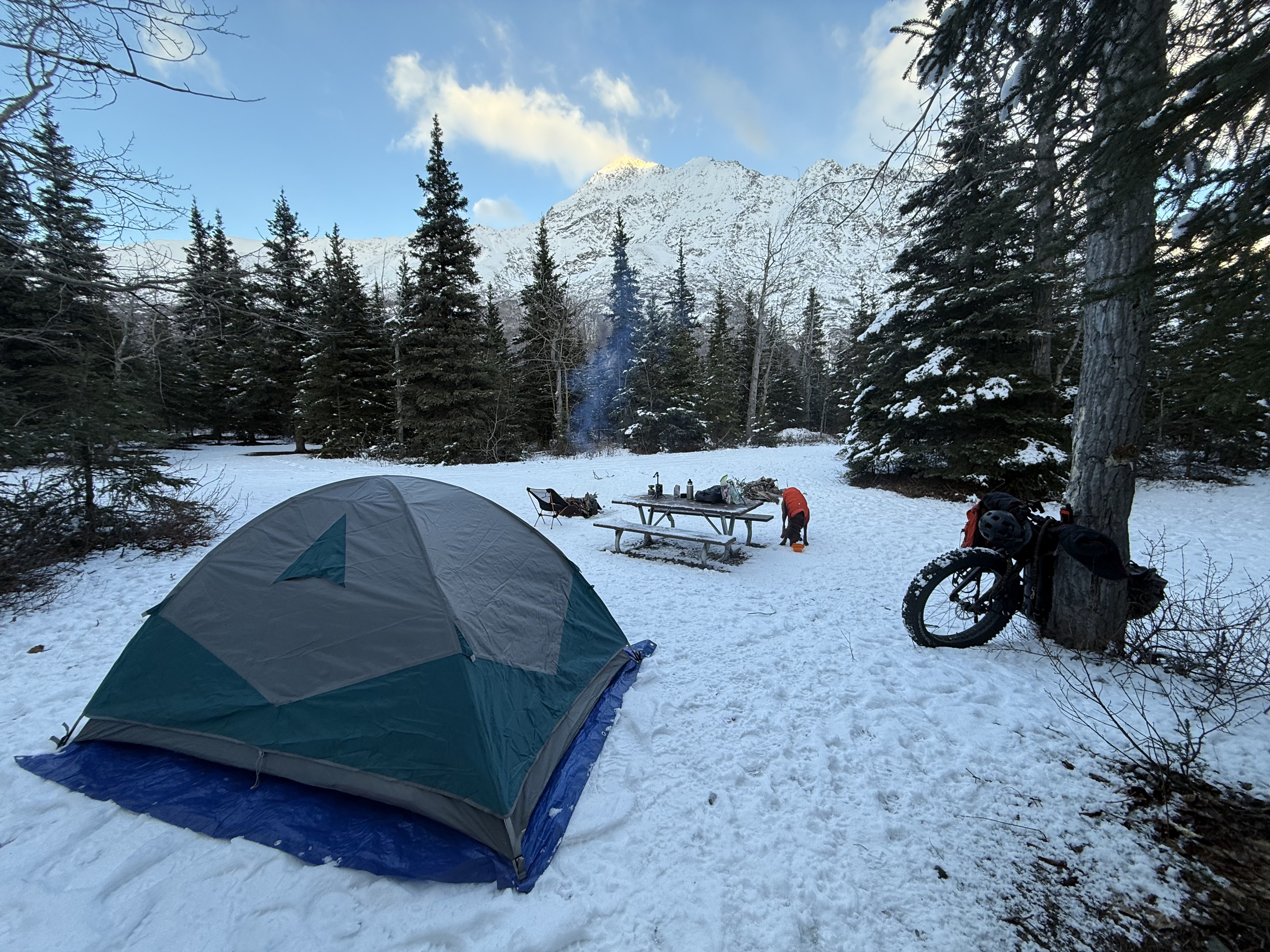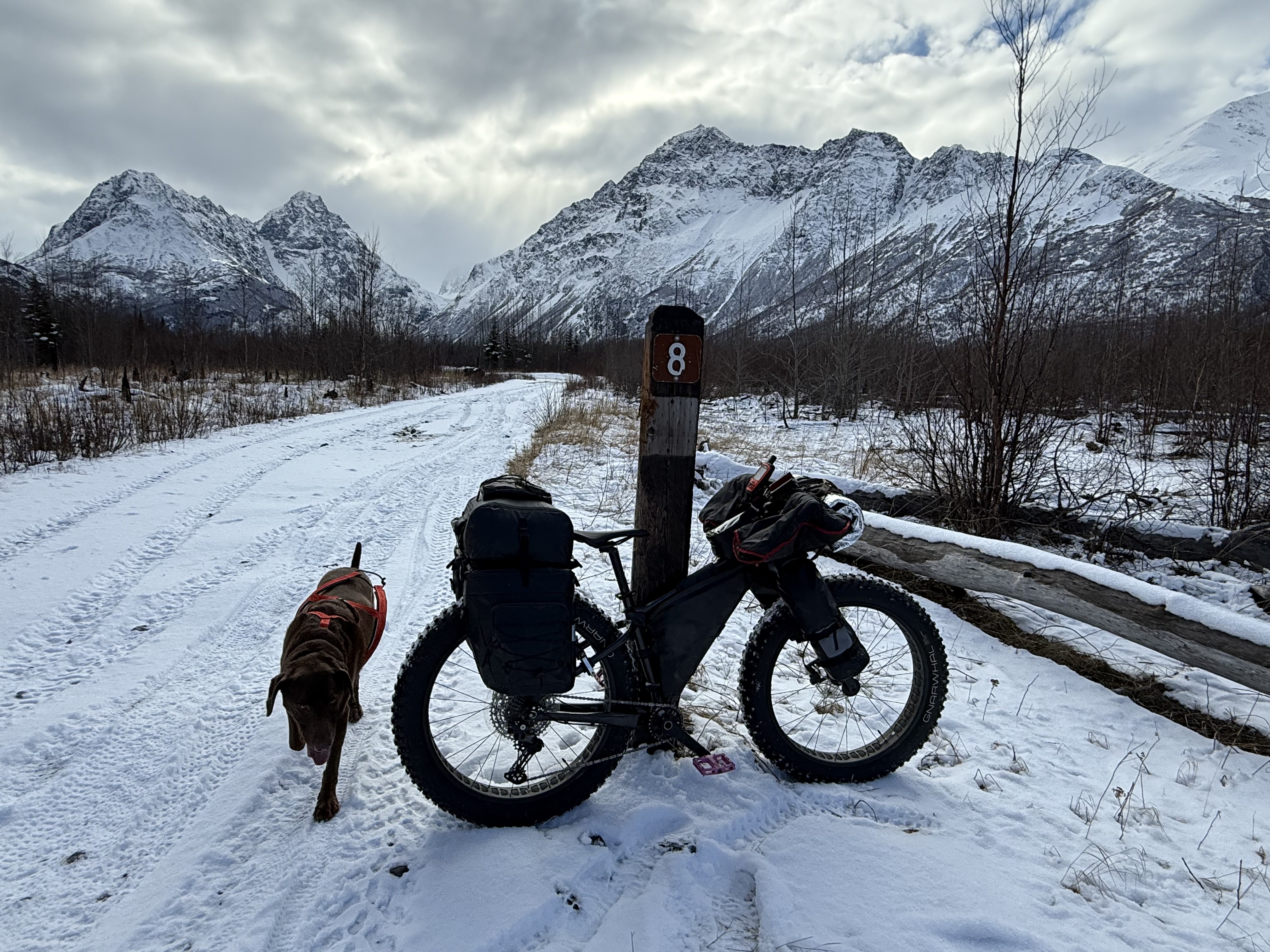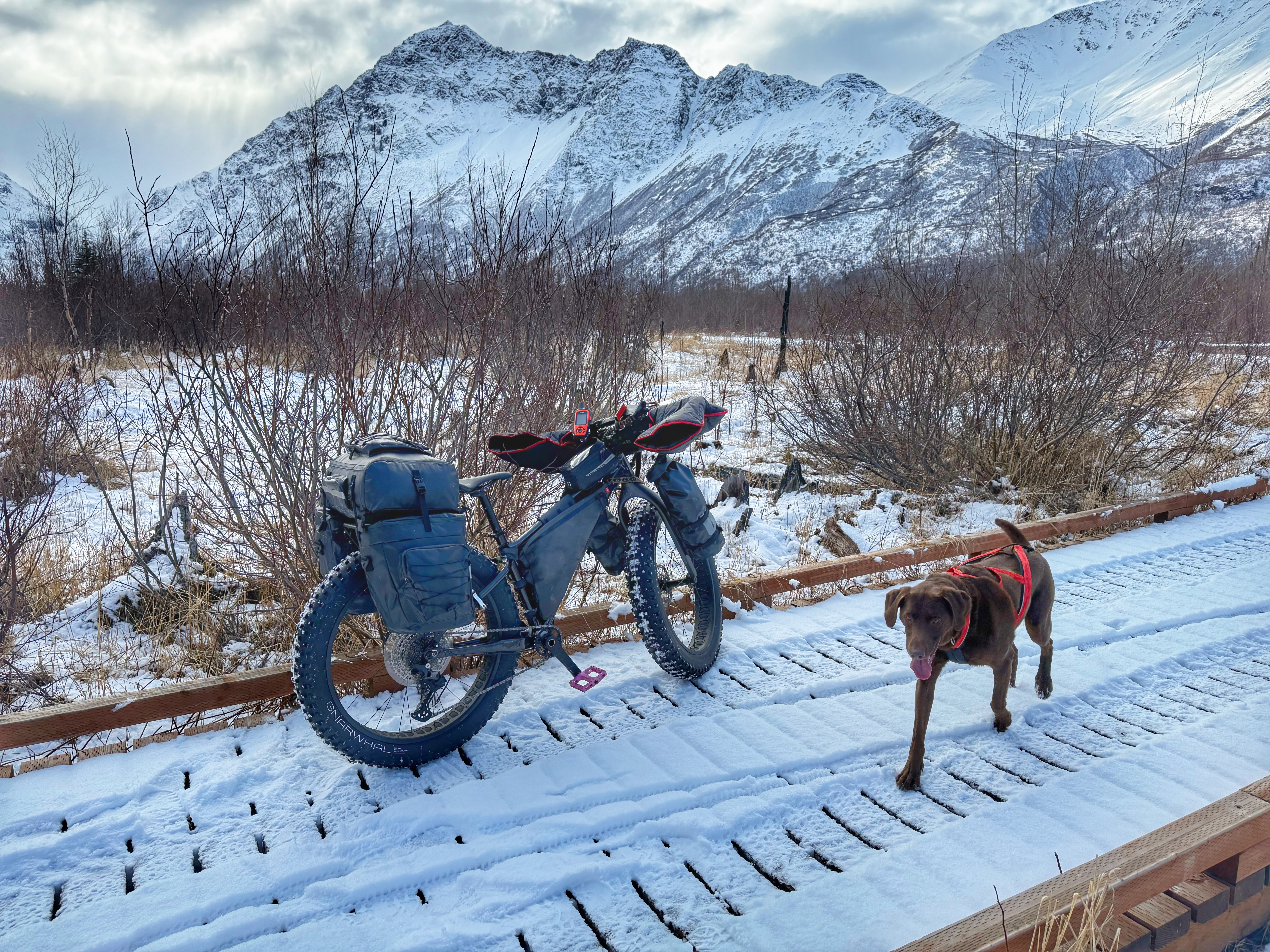 I called a couple of people to see if they were interested in joining me for a fat bike bikepacking trip to mile 8.5 on the Eklutna Lakeside, staying at a remote campground called Eklutna Alex. They were not. Over the years I’ve found that finding winter camping friends is not easy, but I didn’t mind. Honestly, I needed the alone time, and Goose would, of course, be joining me. I spend the last few evenings of the work week packing and prepping, installing a new rear rack on my fat bike, doing some basic maintenance, and collecting my gear, including a battery-operated mini saw.