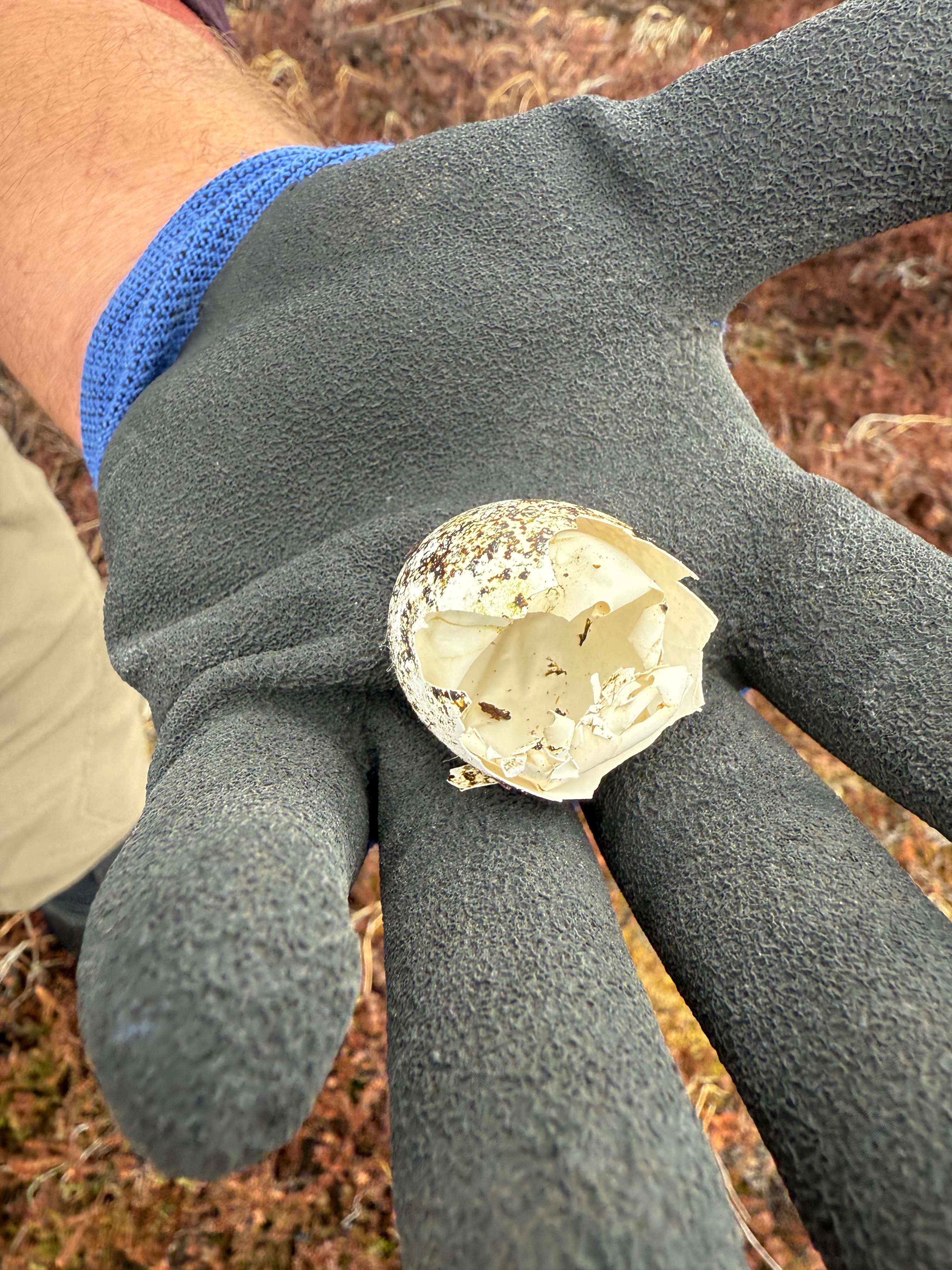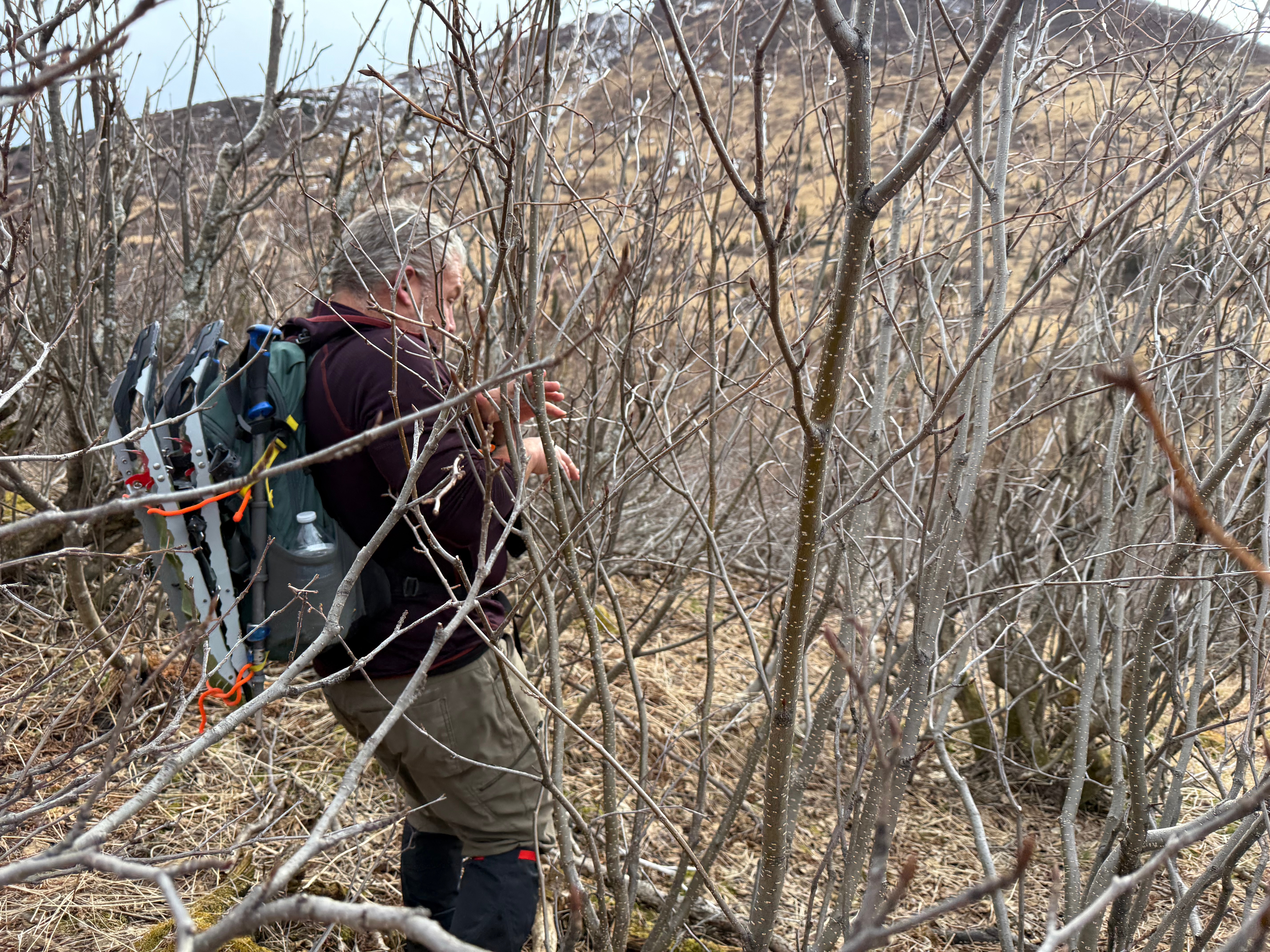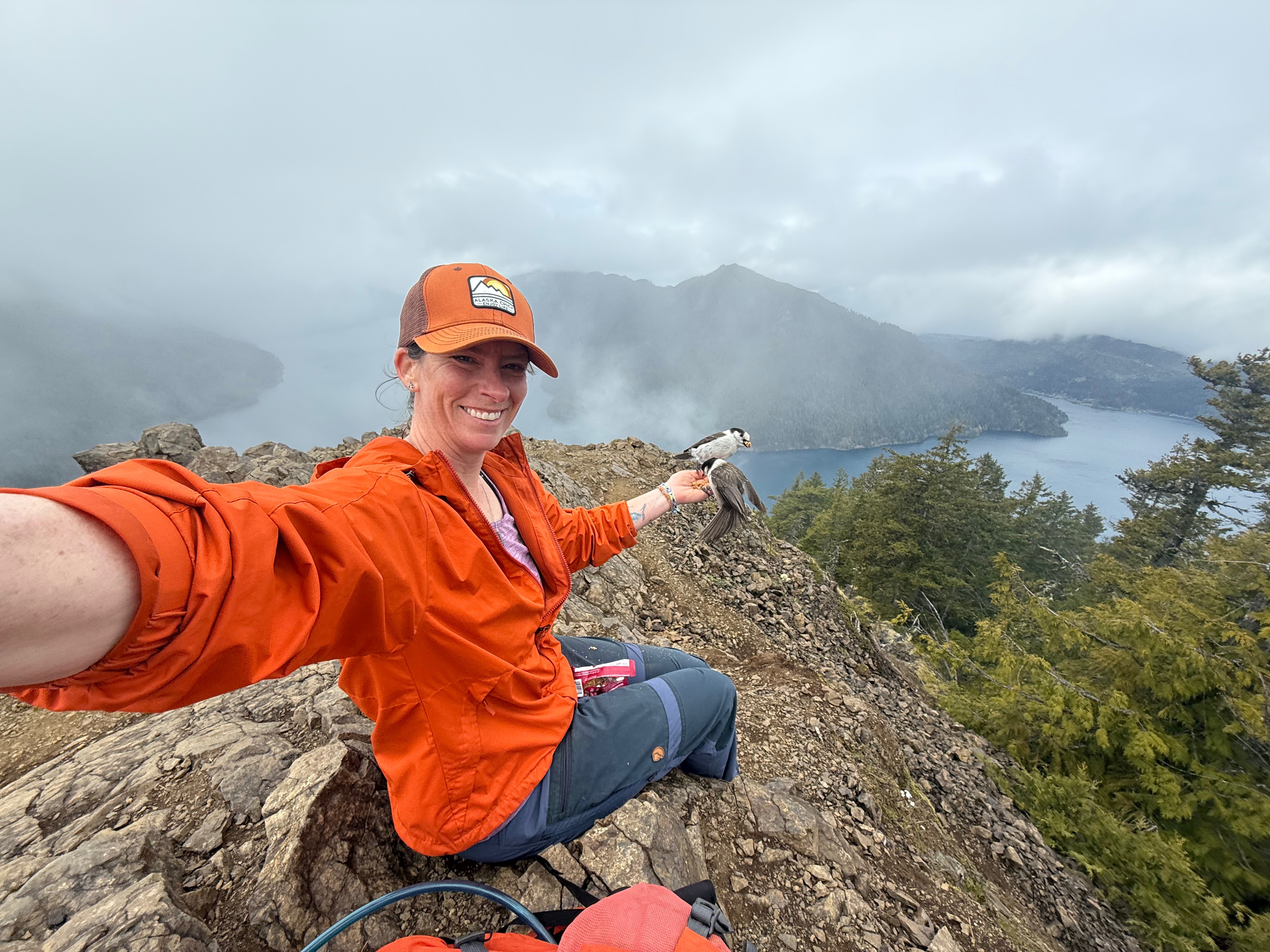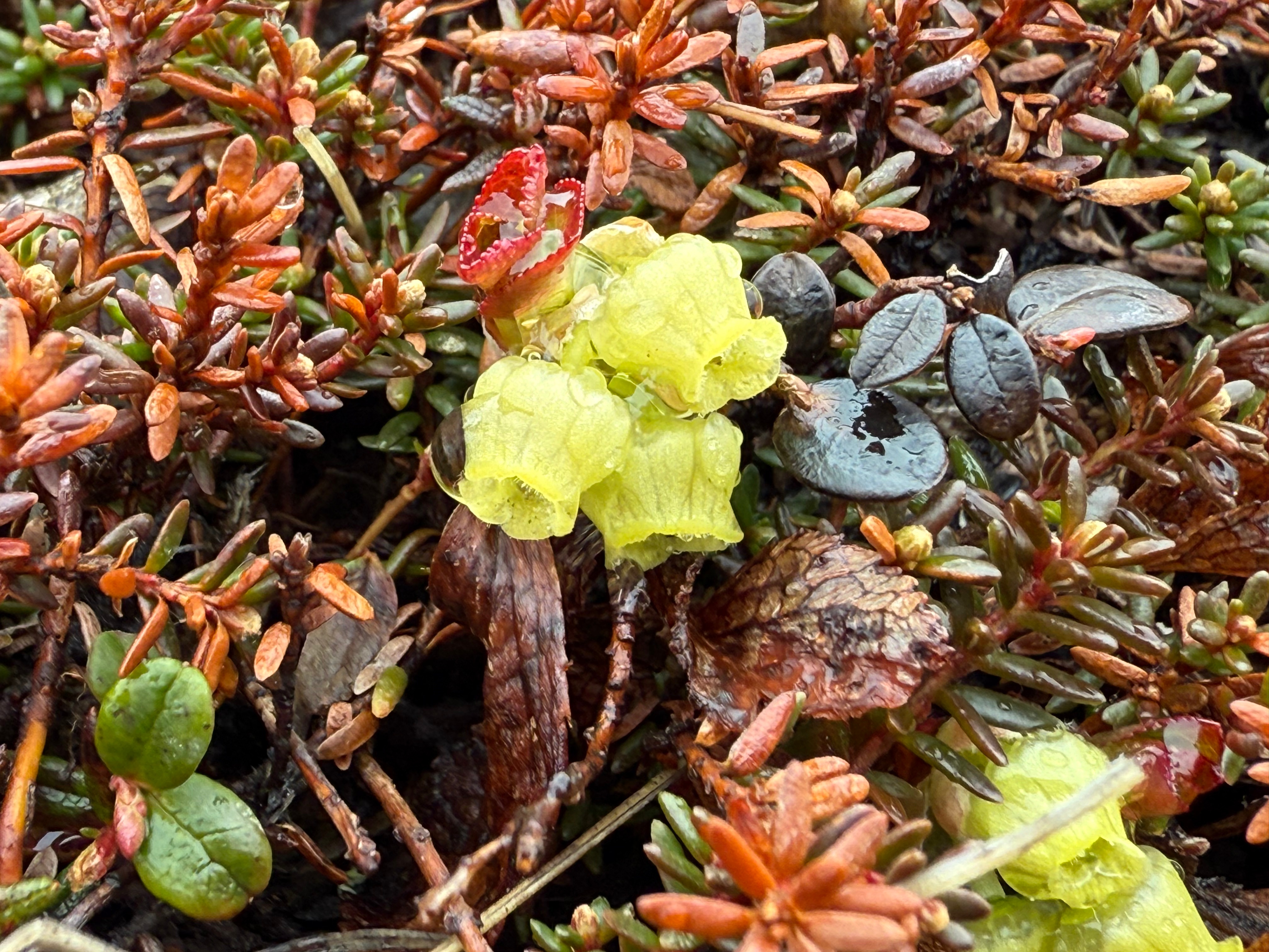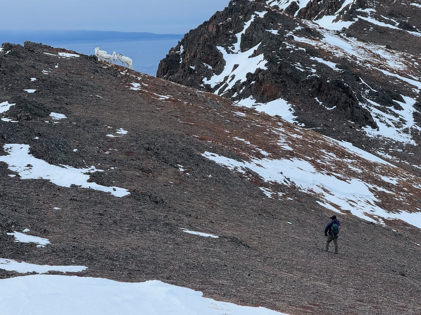 A solitary ptarmigan perched on a boulder welcomed us to the top of The Dome, where we paused for a quick bite before continuing up the ridge toward Knoya. The low ceiling of clouds persisted as we ascended the jagged ridge. From a distance, the ridgeline looks deceptively daunting, but once you’re on it, the walking is fairly straightforward with no scrambling required.