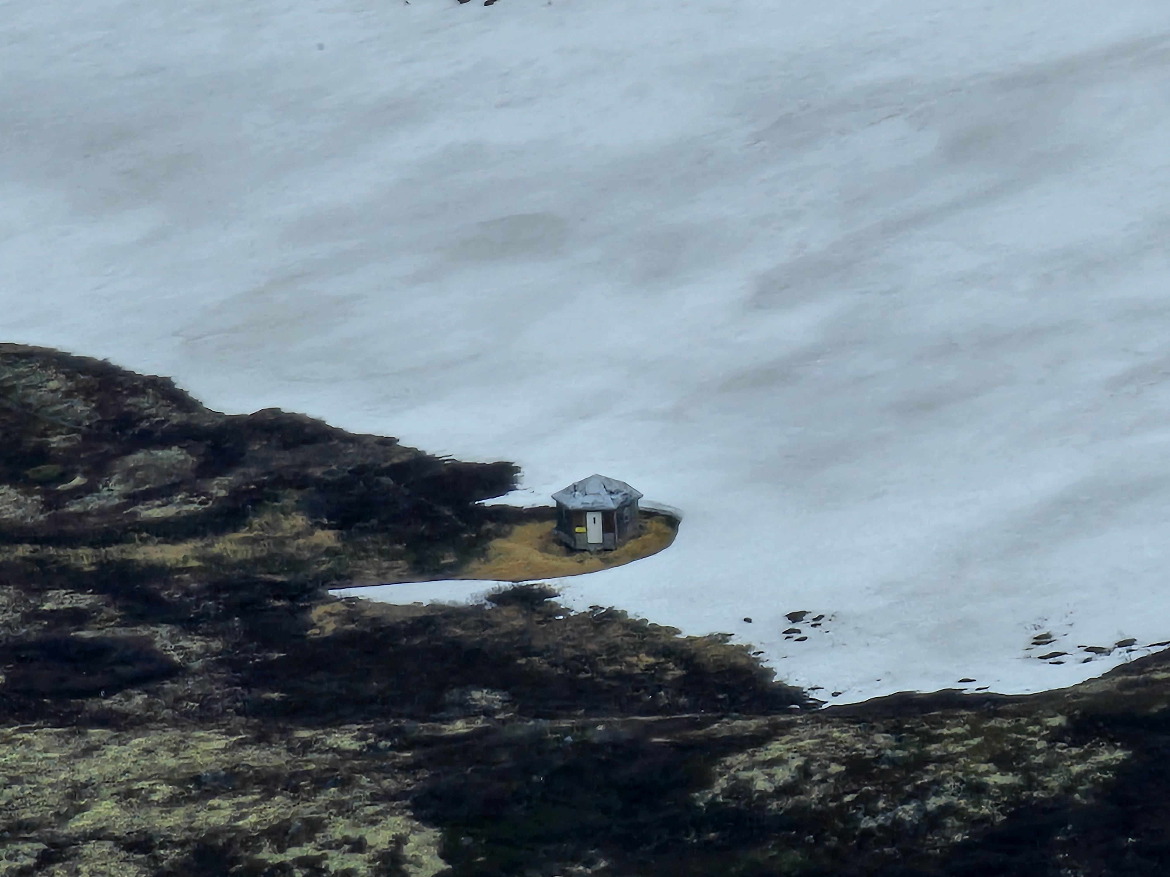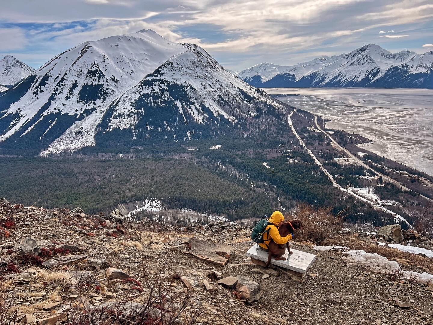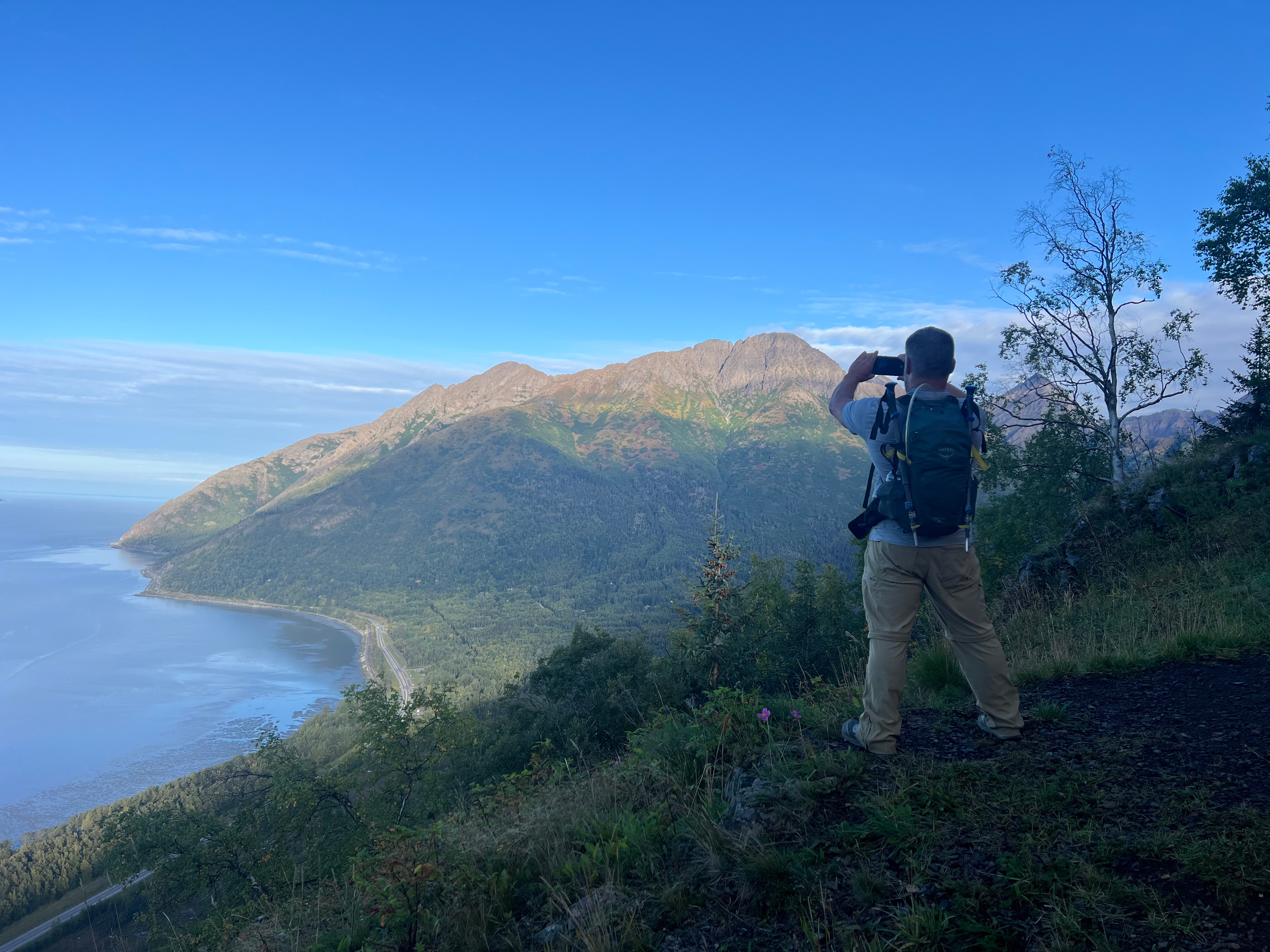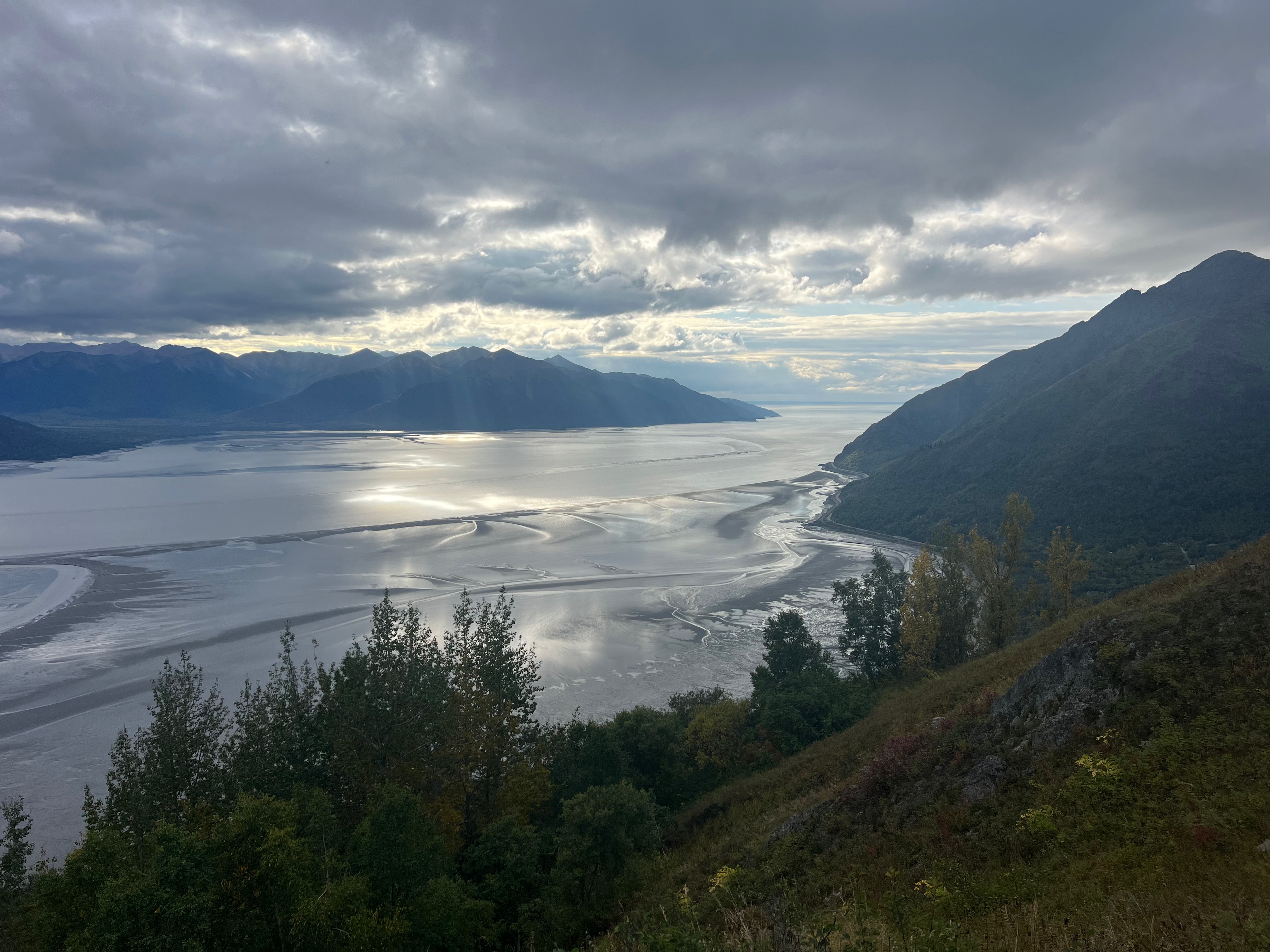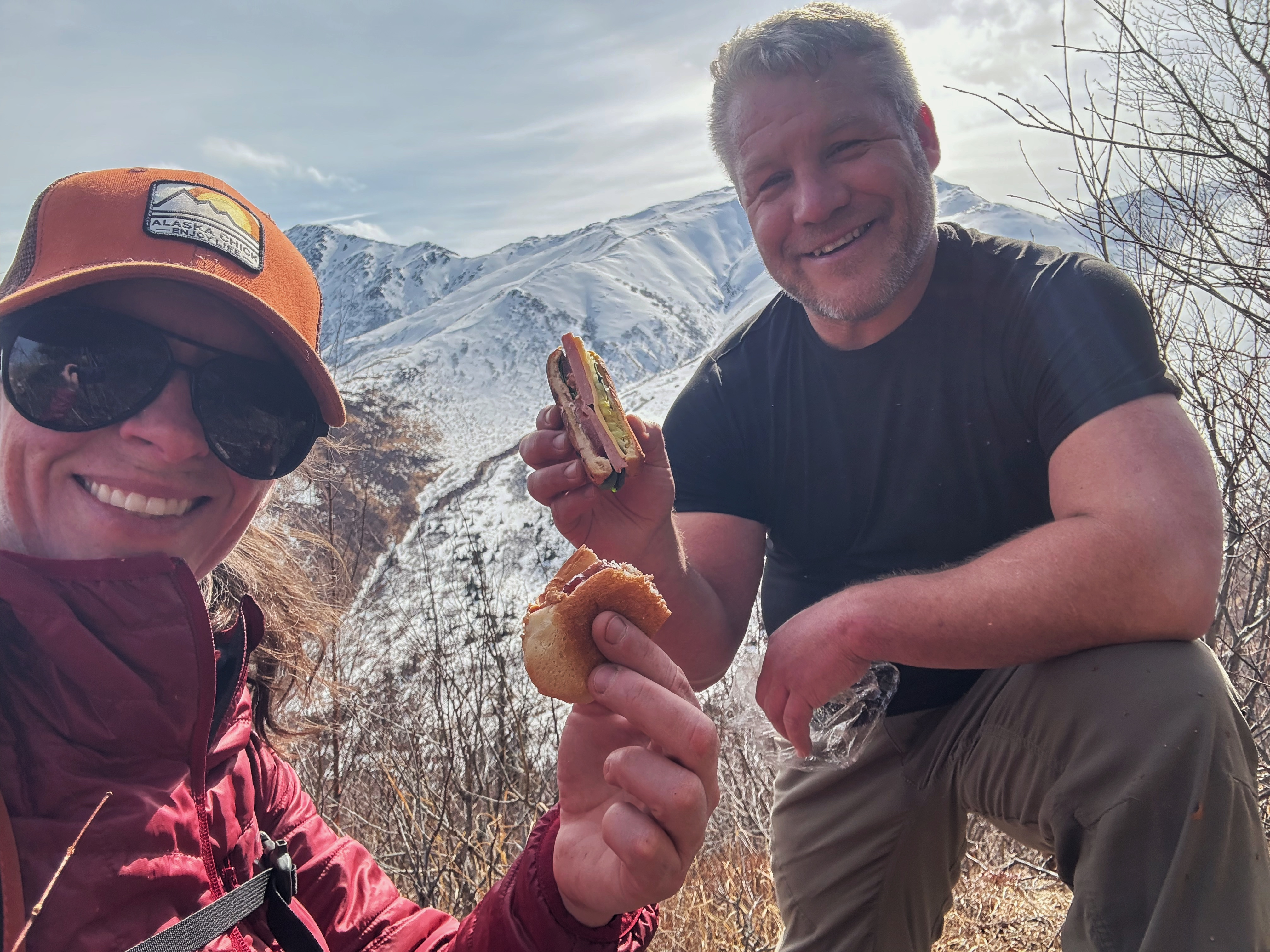 The sky continued to open up, and the little blue patch grew. We spotted a small cabin down in Snow Hawk Valley. I’ve heard of people using it, but since it’s on JBER land where overnight stays aren’t permitted, I haven’t found any official resources explaining how to legally use the shelter. I wouldn’t recommend attempting an overnight trip there without written permission from JBER officials—you don’t want to lose access to military land hikes.