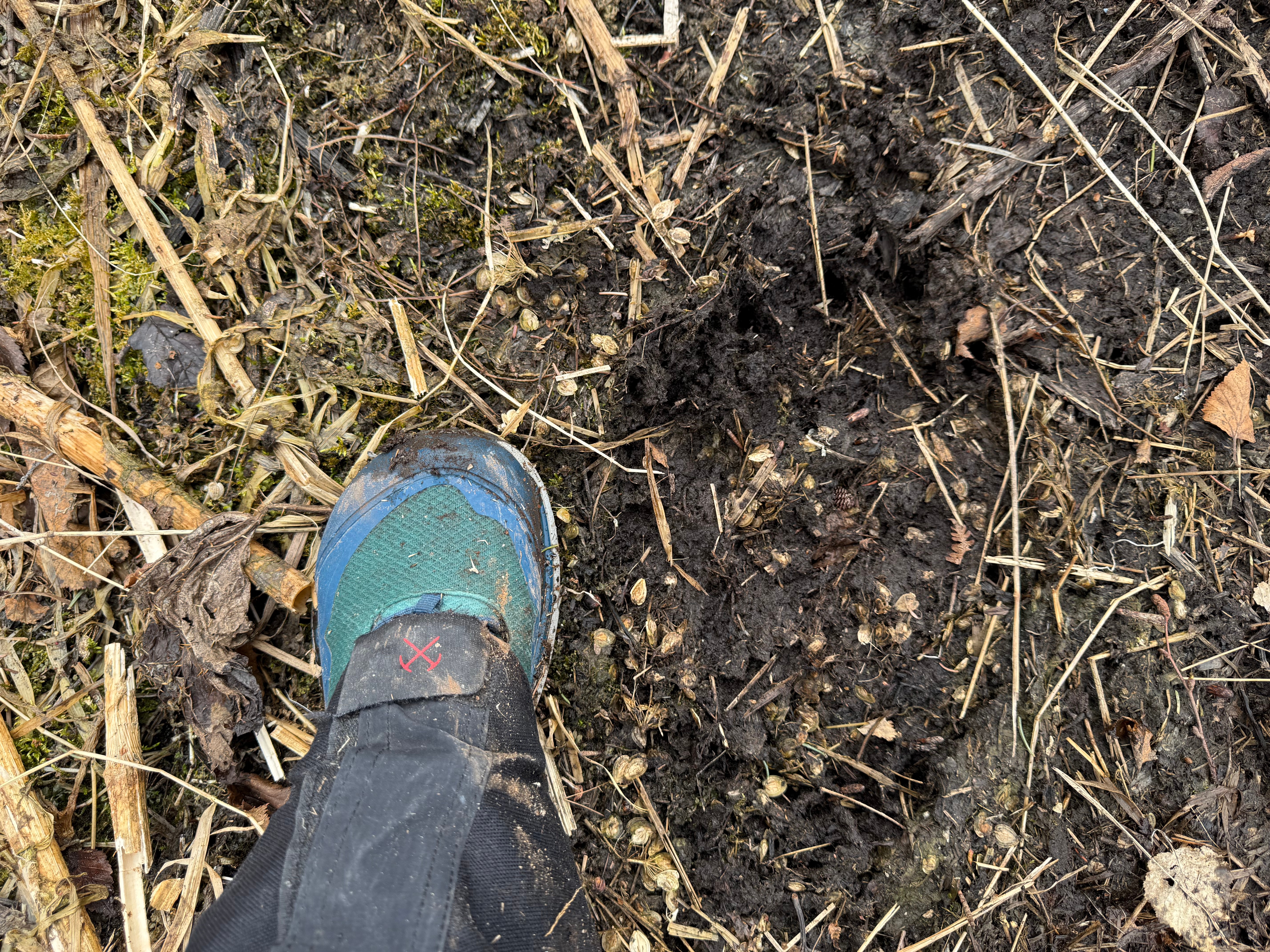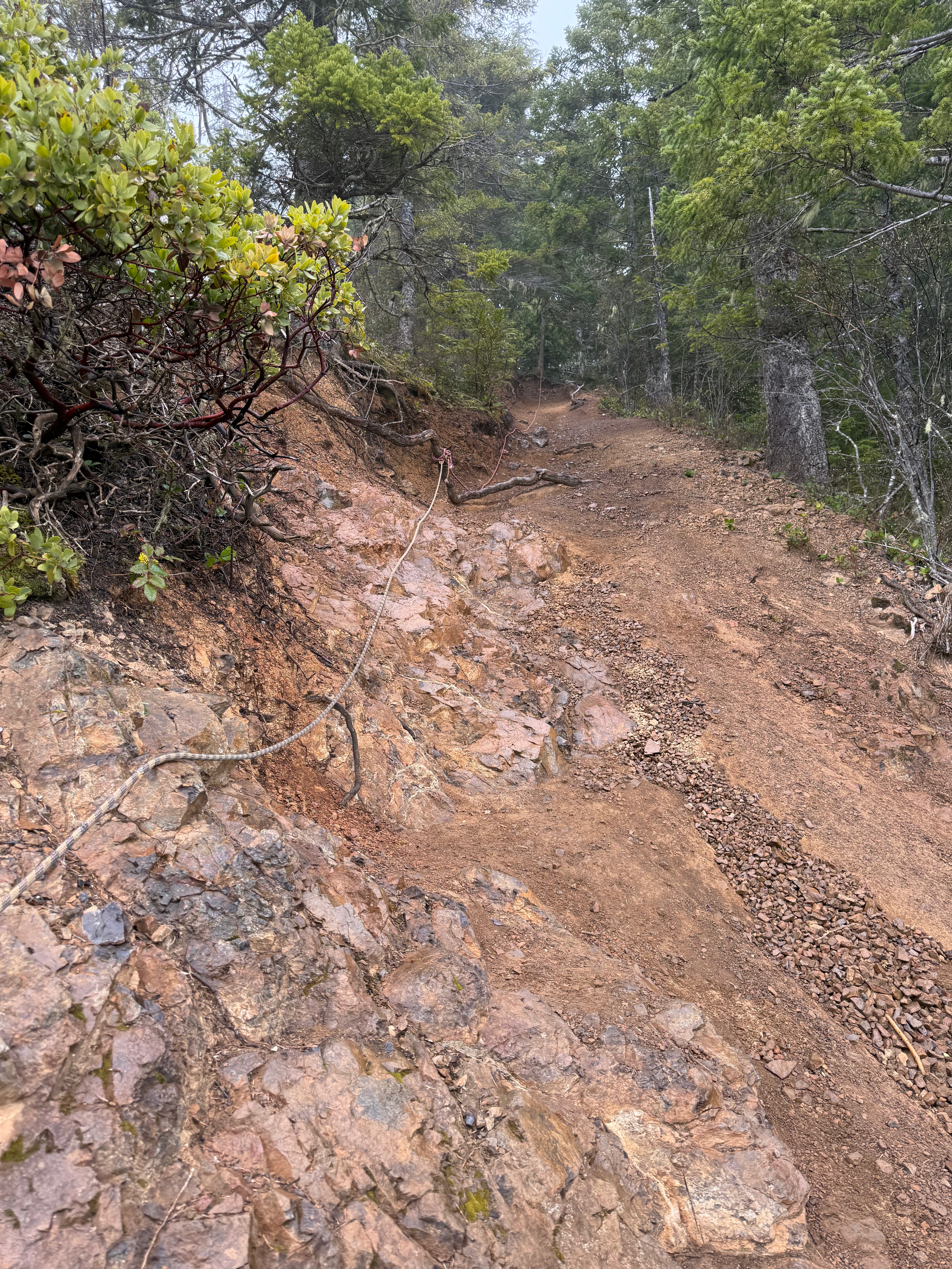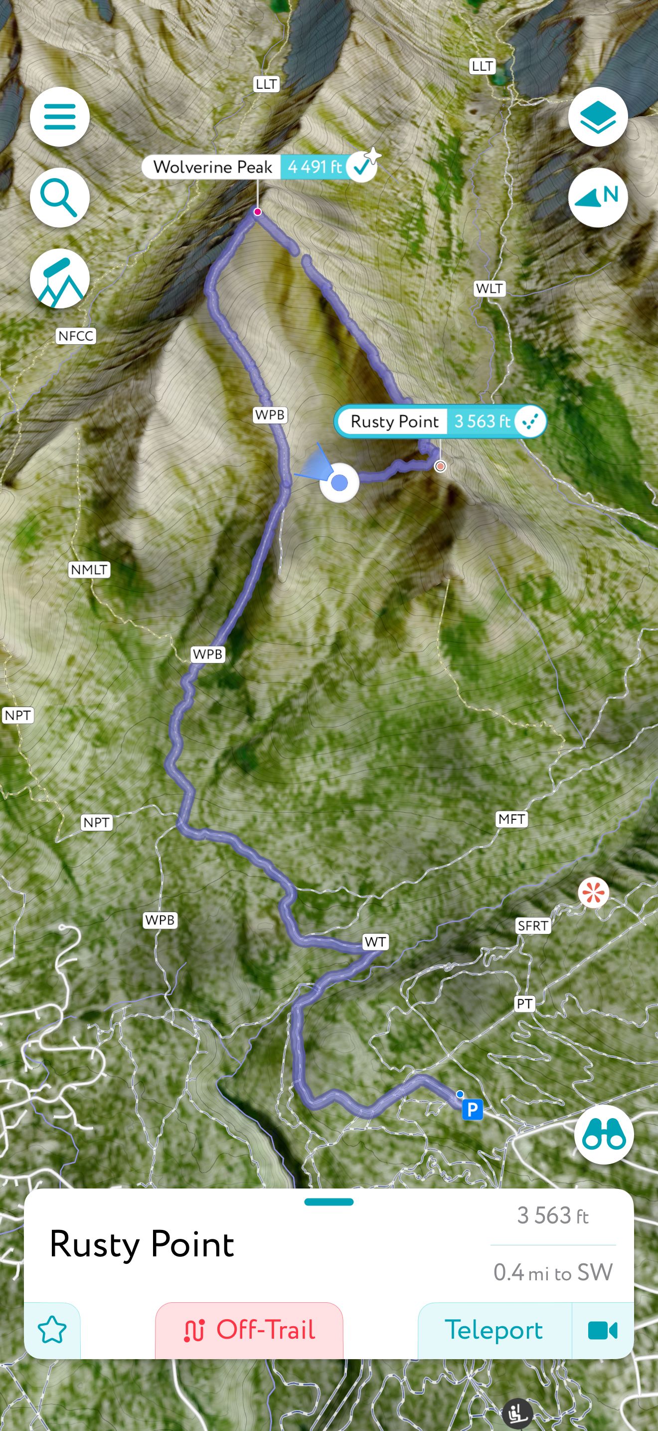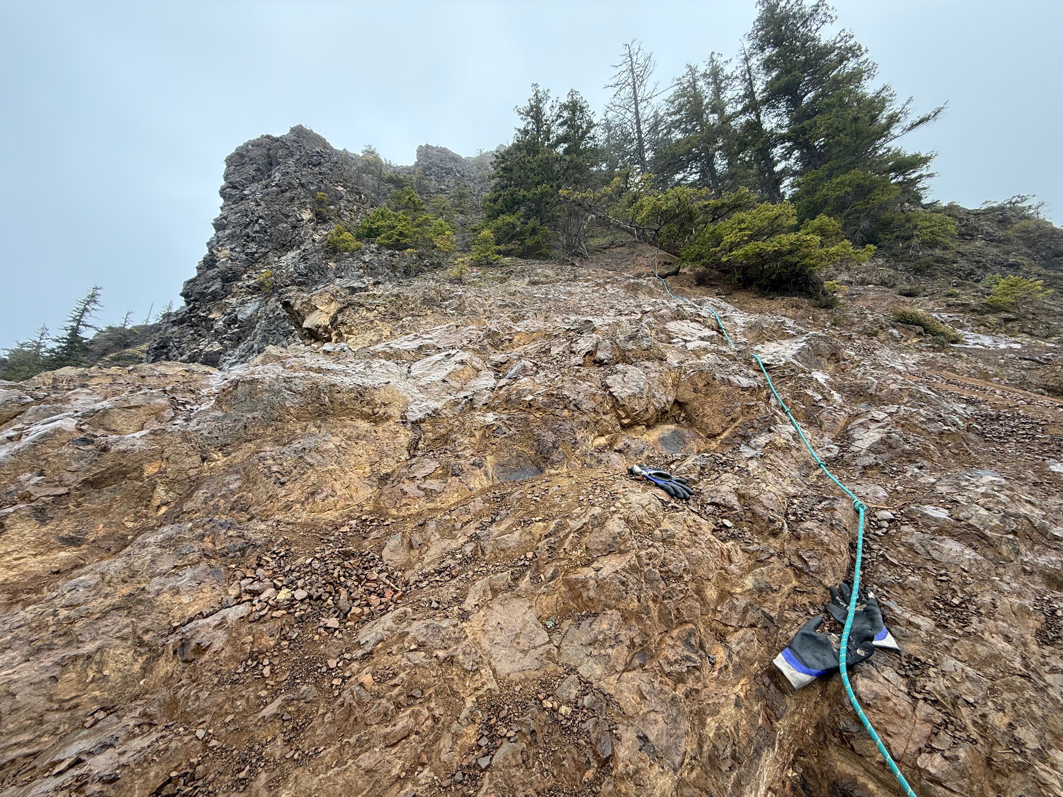 The true summit of Knoya is tucked away from the main ridgeline, so as we approached what seemed to be the peak at around mile 4.8, we veered just south of the intersection of the ridges leading to The Dome and Kanchee, traversing the south-facing slopes. There’s little risk here, aside from the jagged rocks—one of which managed to slice through my shoe when I misstepped. Thankfully, my Topos took the damage and my foot was fine.