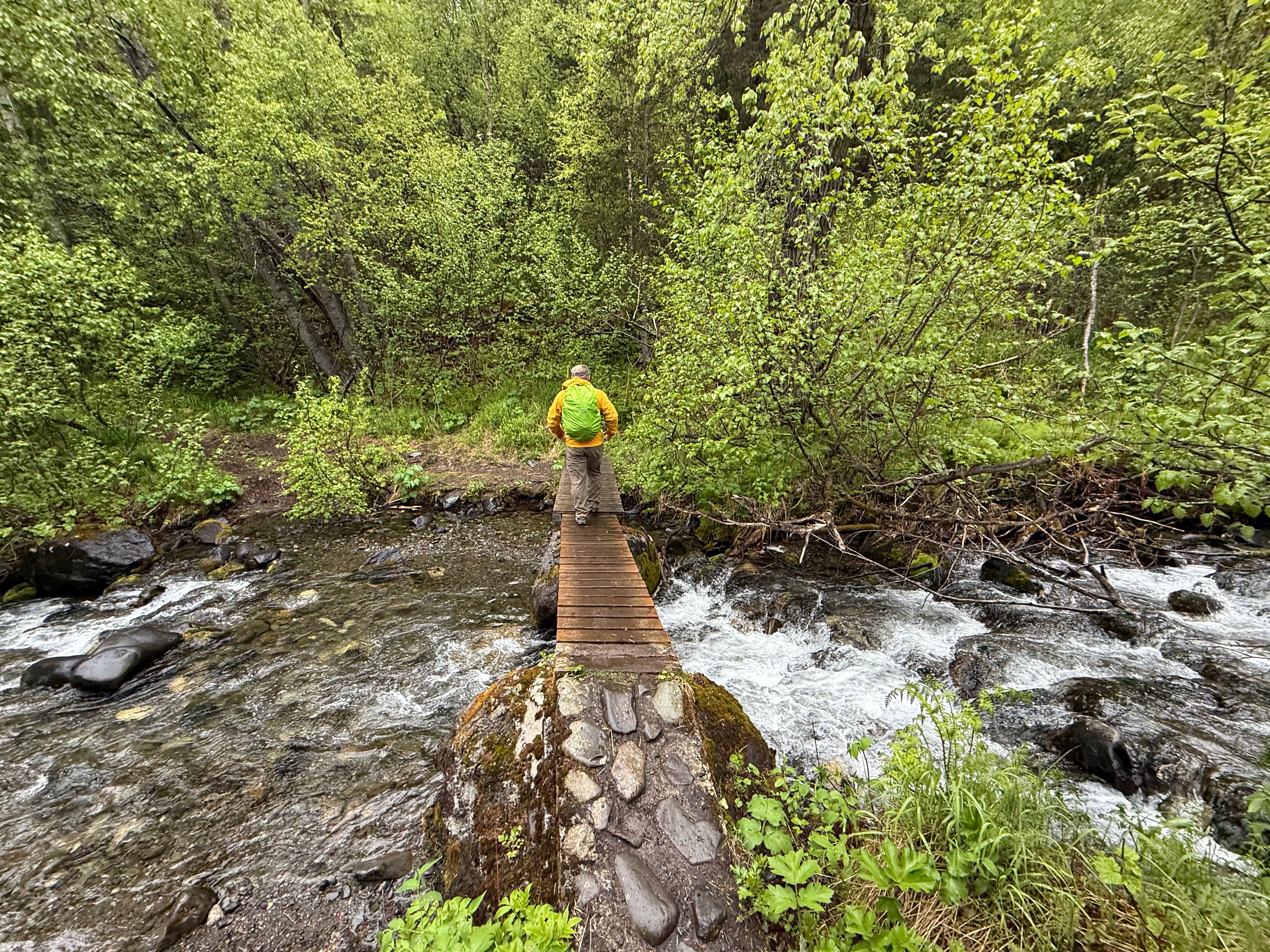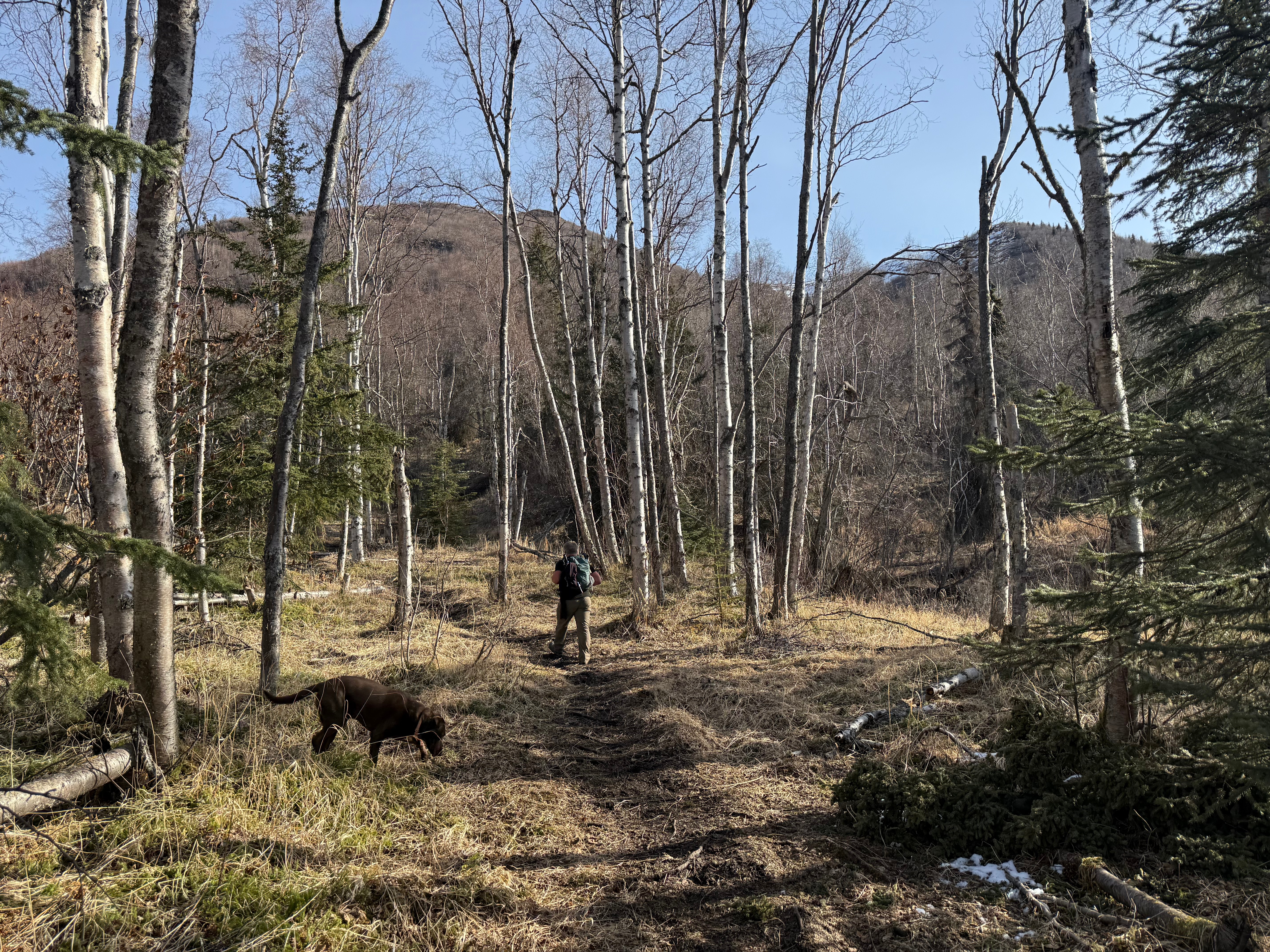 We were on the road within an hour, heading toward the Bulldog Trail and back to the Klutina Trailhead, only stopping to watch a good-sized porcupine climb a tree. The lower we got, the sunnier and hotter it became—a fine reward for a day that had started so dreary.