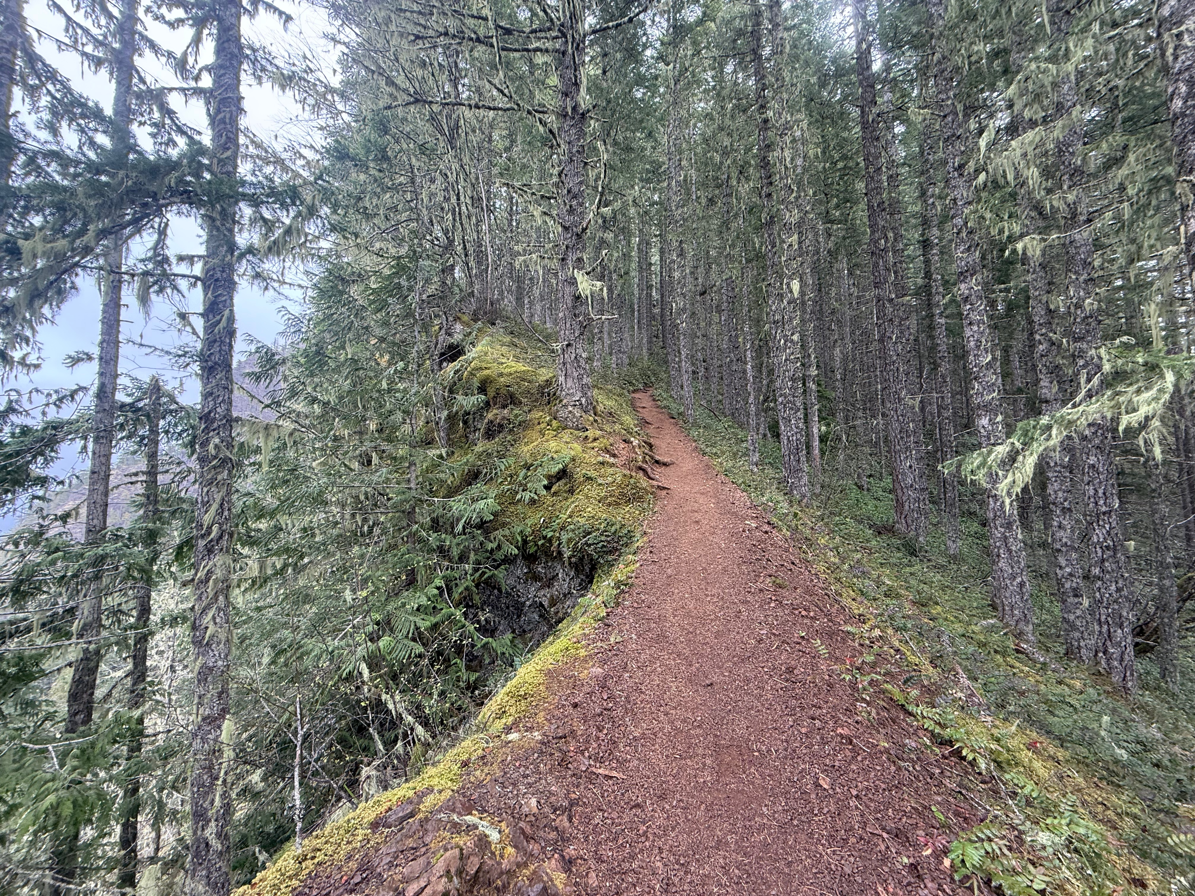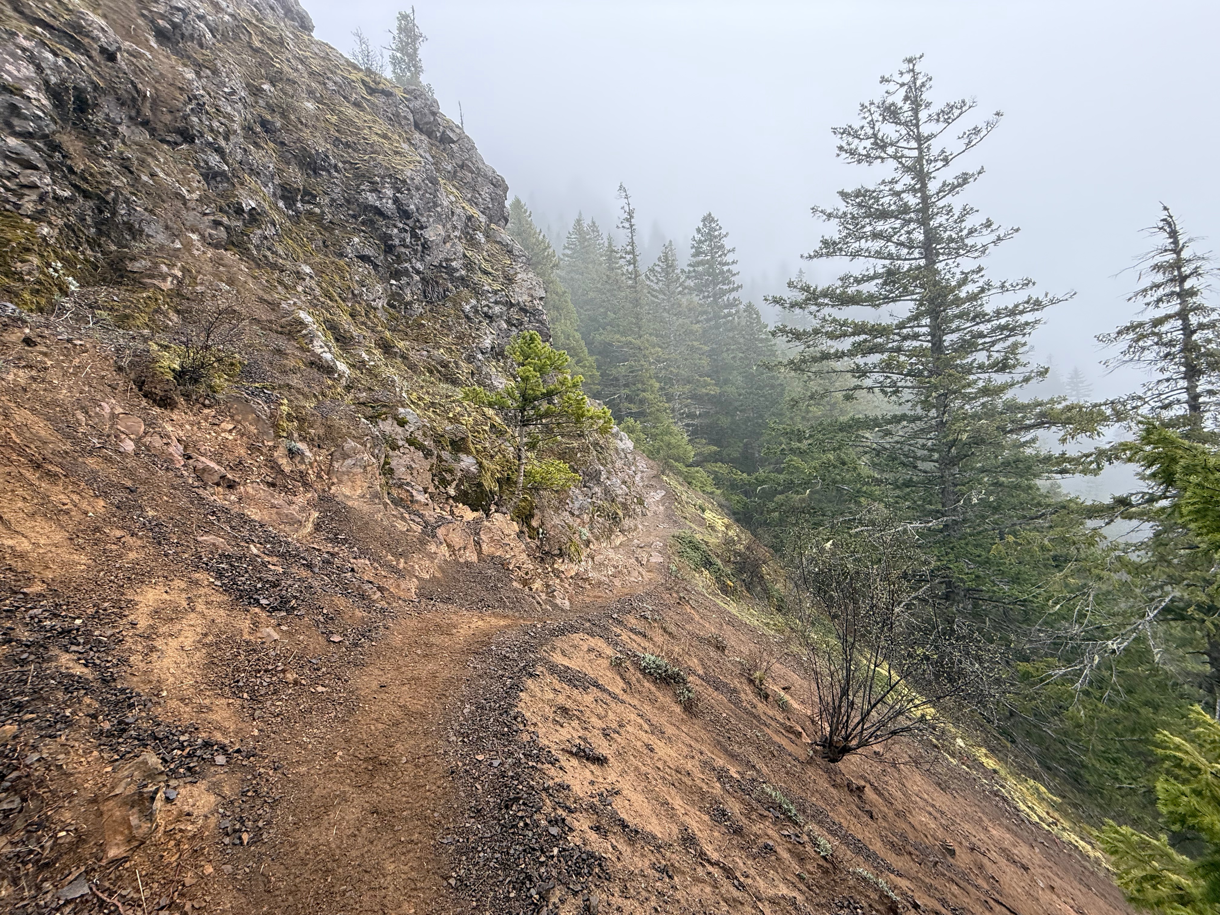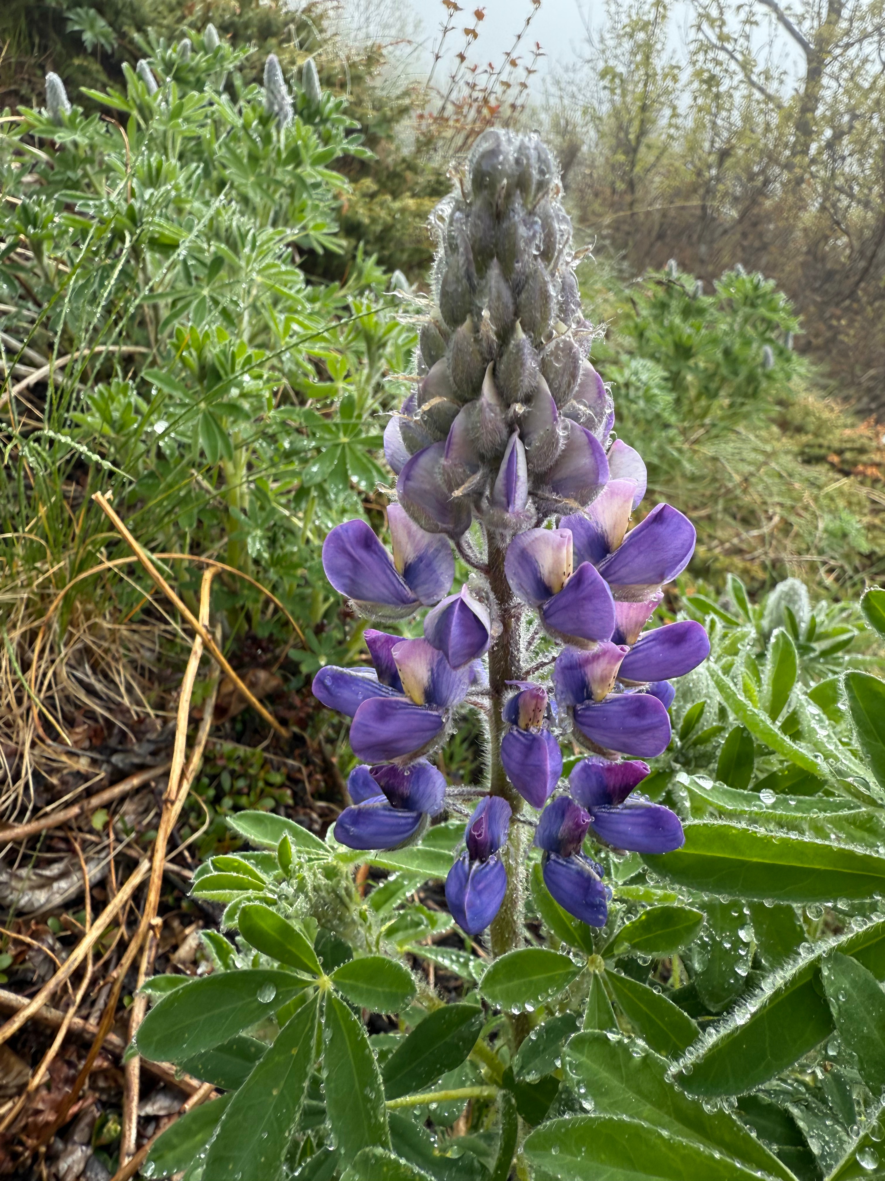 Within two miles, we had already passed a variety of freshly blossomed wildflowers and the Long Lake Trail. Not long after that, we were above the treeline and deep in the fog. As we trudged along in our respective gloomy stupors, craving warmth and sunlight, little glimpses of blue sky would peek out from behind the thick clouds, offering slivers of hope.