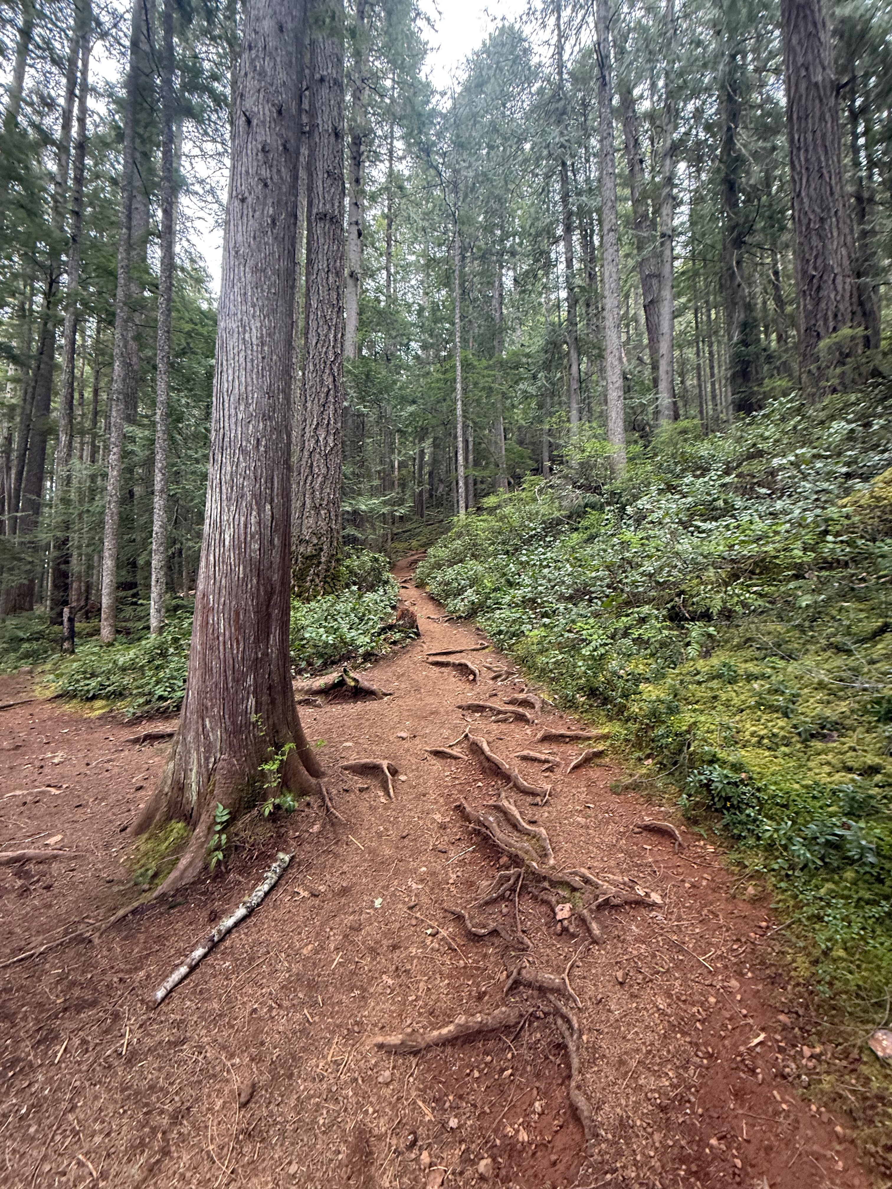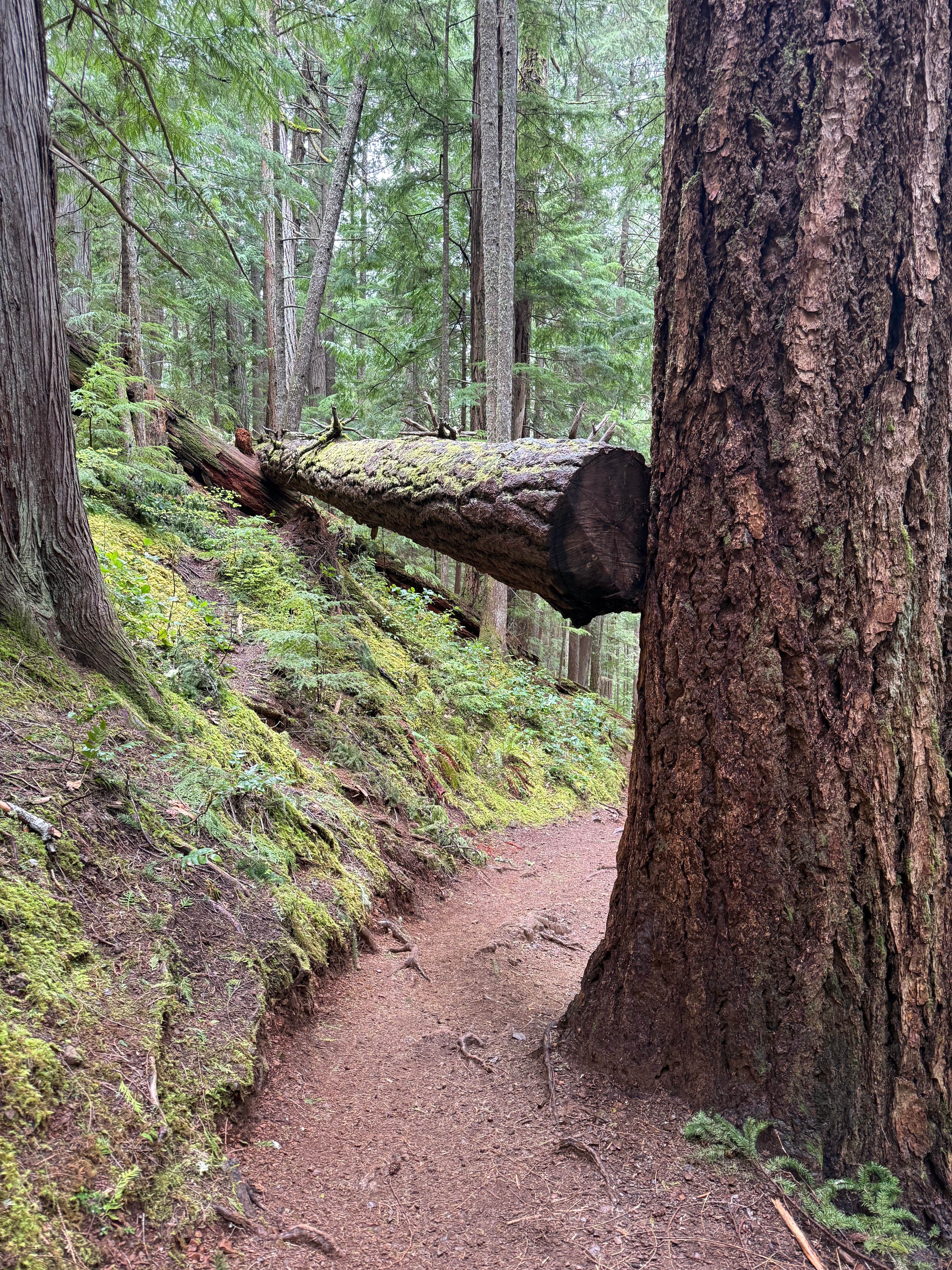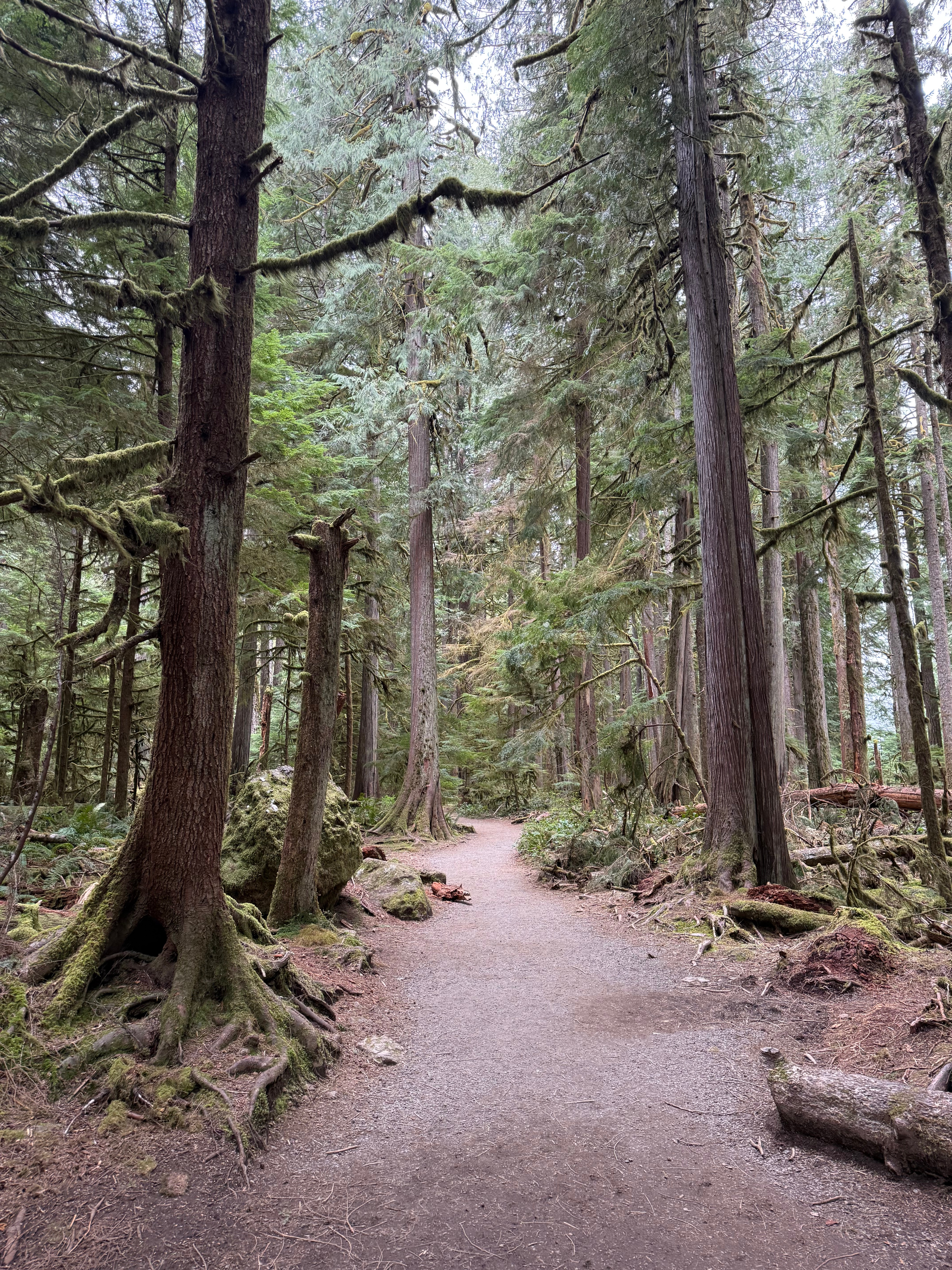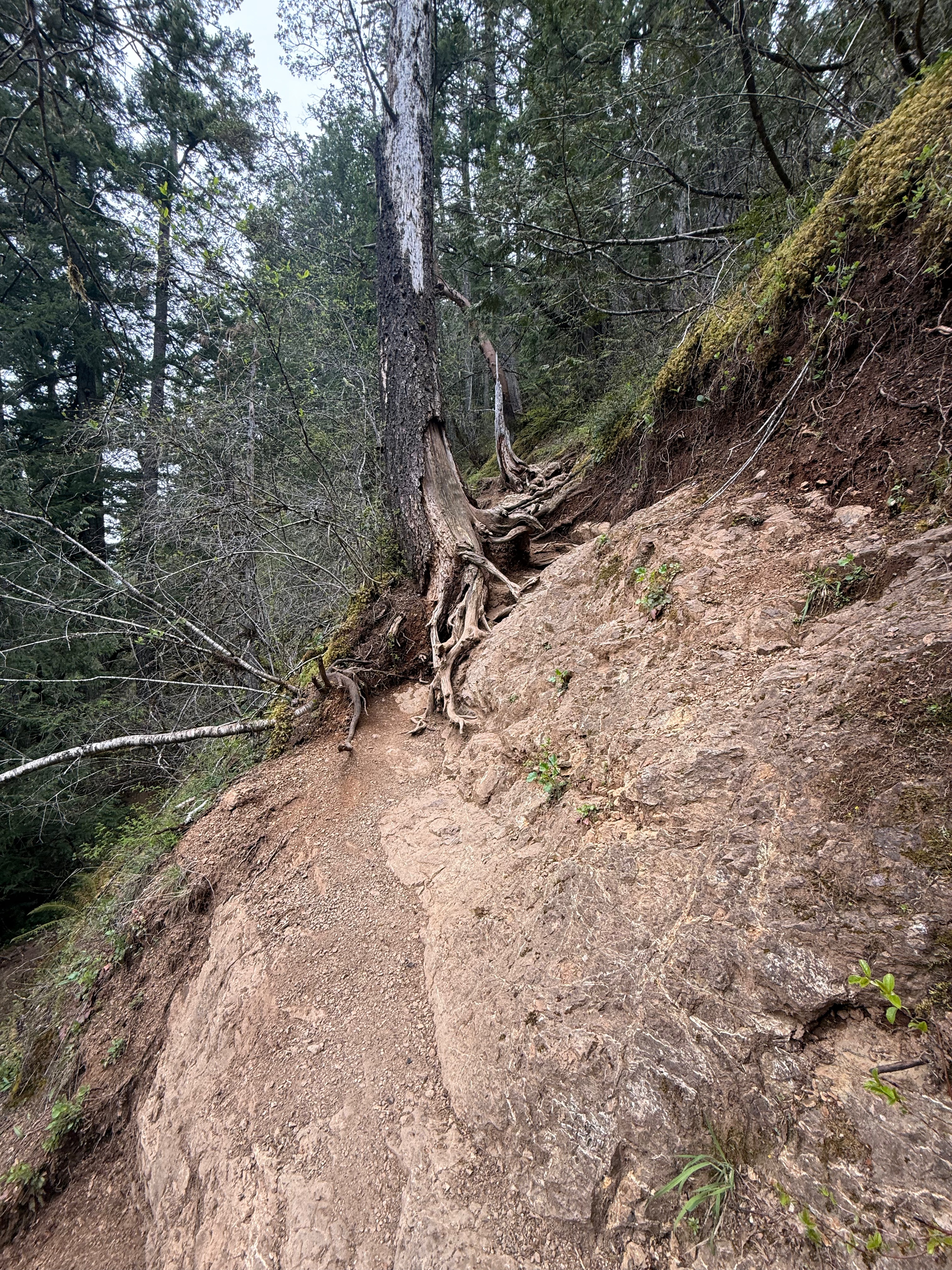 Within two miles, we had already passed a variety of freshly blossomed wildflowers and the Long Lake Trail. Not long after that, we were above the treeline and deep in the fog. As we trudged along in our respective gloomy stupors, craving warmth and sunlight, little glimpses of blue sky would peek out from behind the thick clouds, offering slivers of hope.