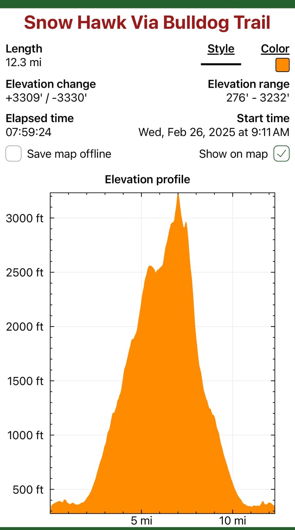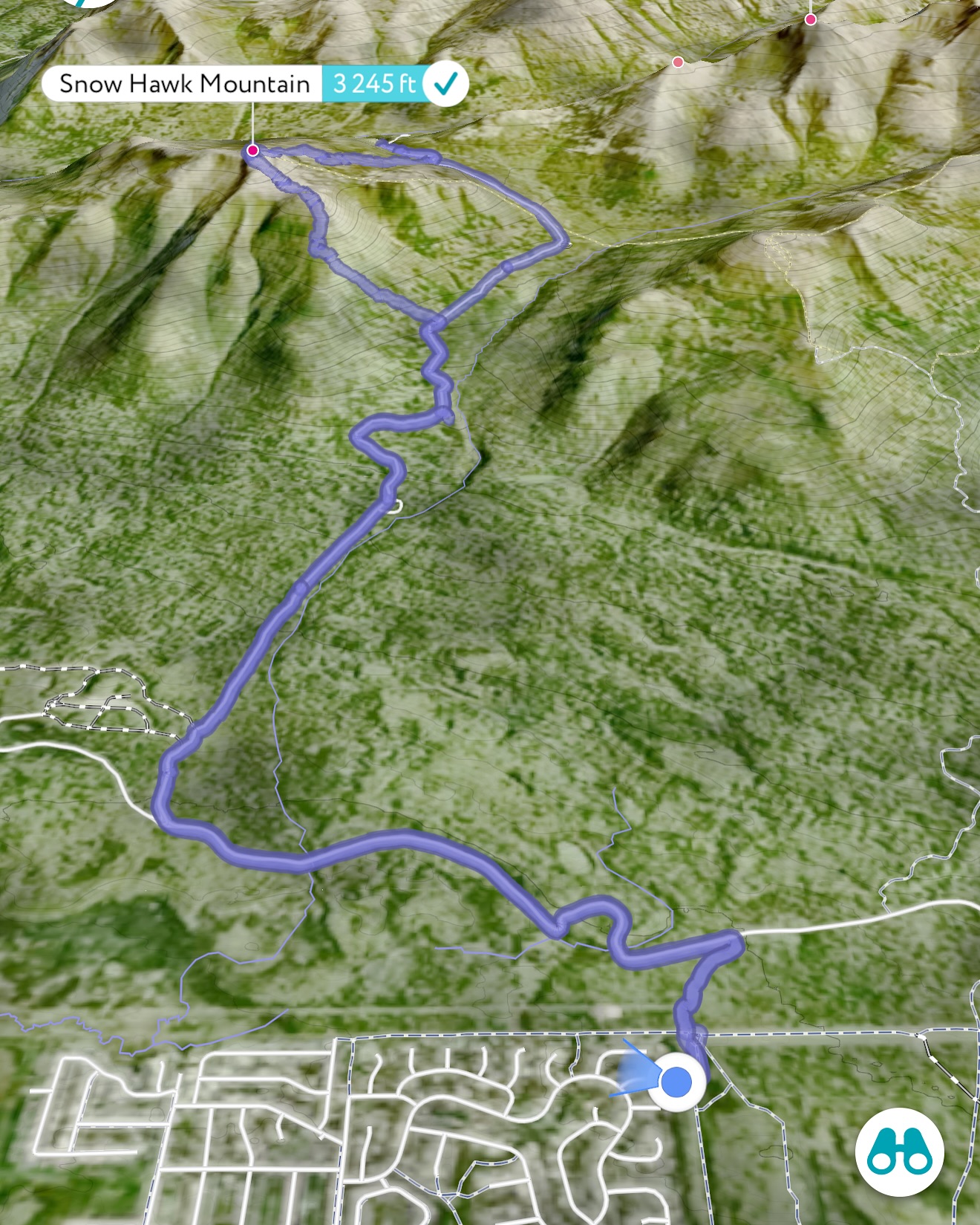 One last summit selfie, and then we descended the ridge toward Snow Hawk Road. It was an uneventful descent—except for Jason finding a nice pocketknife and me discovering a great snow slide.